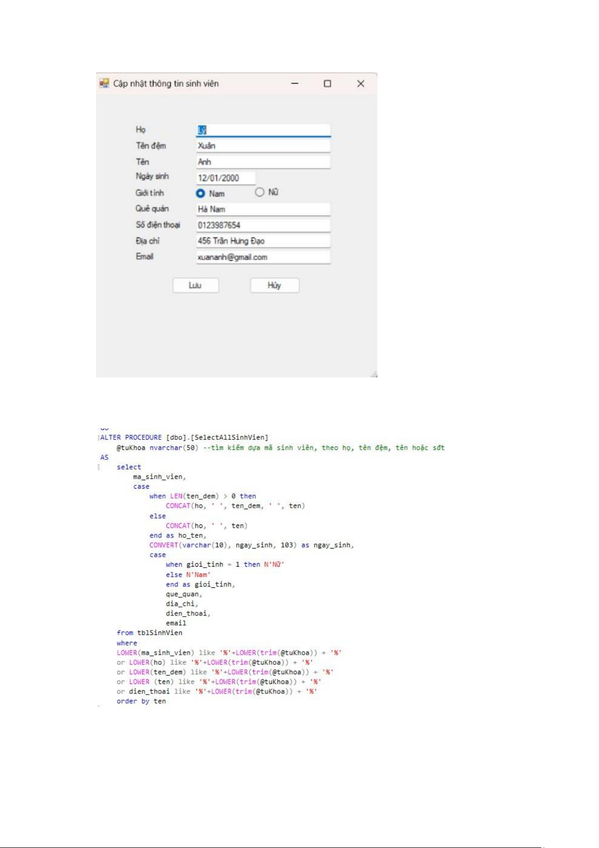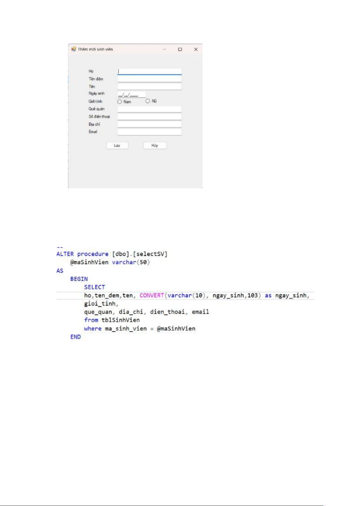 o Các hàm dùng để cập nhật hoặc thêm sinh viên. lOMoAR cPSD| 60755984