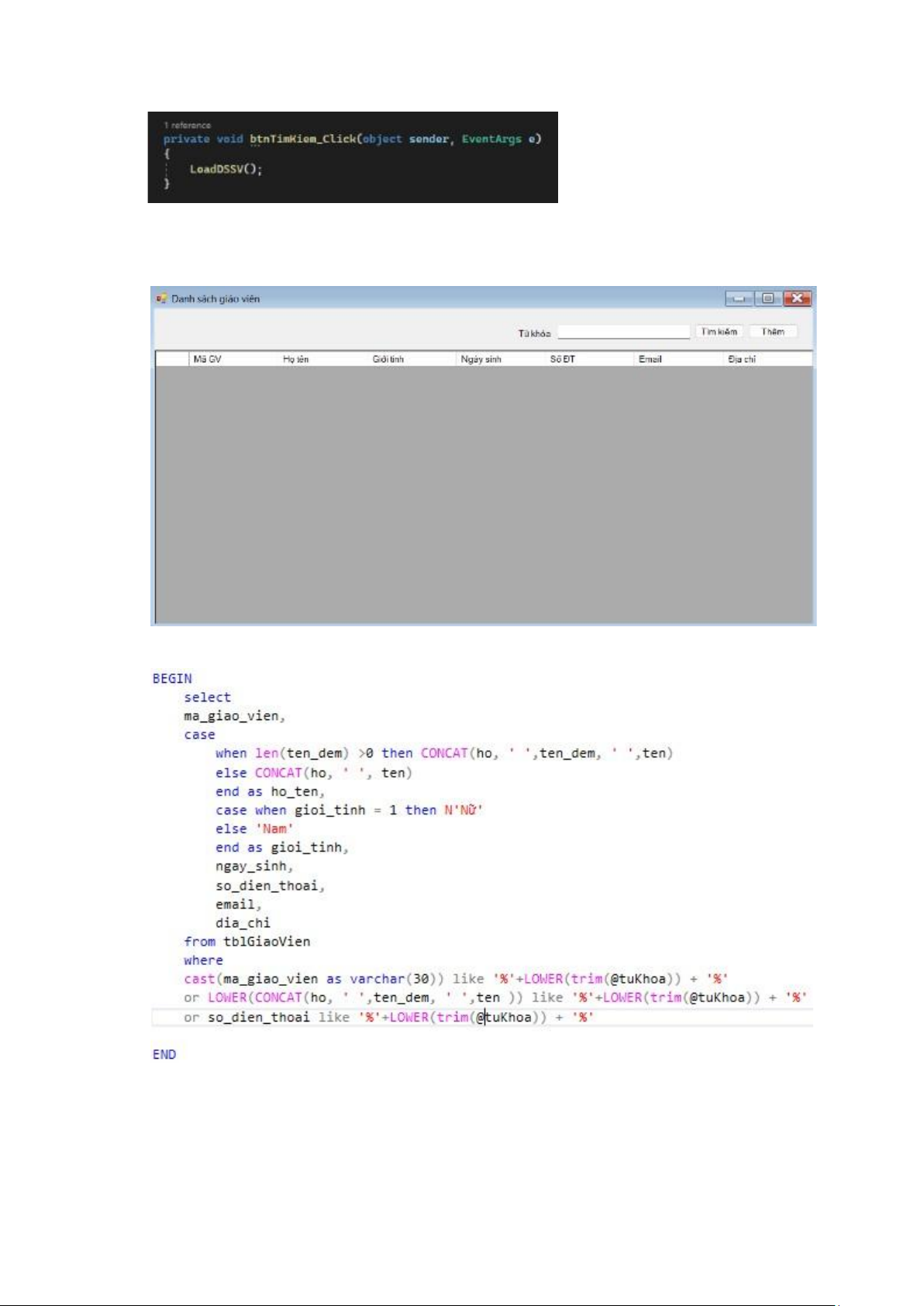 • Giao diện hiển thị thông tin giáo viên, tìm kiếm giáo viên.