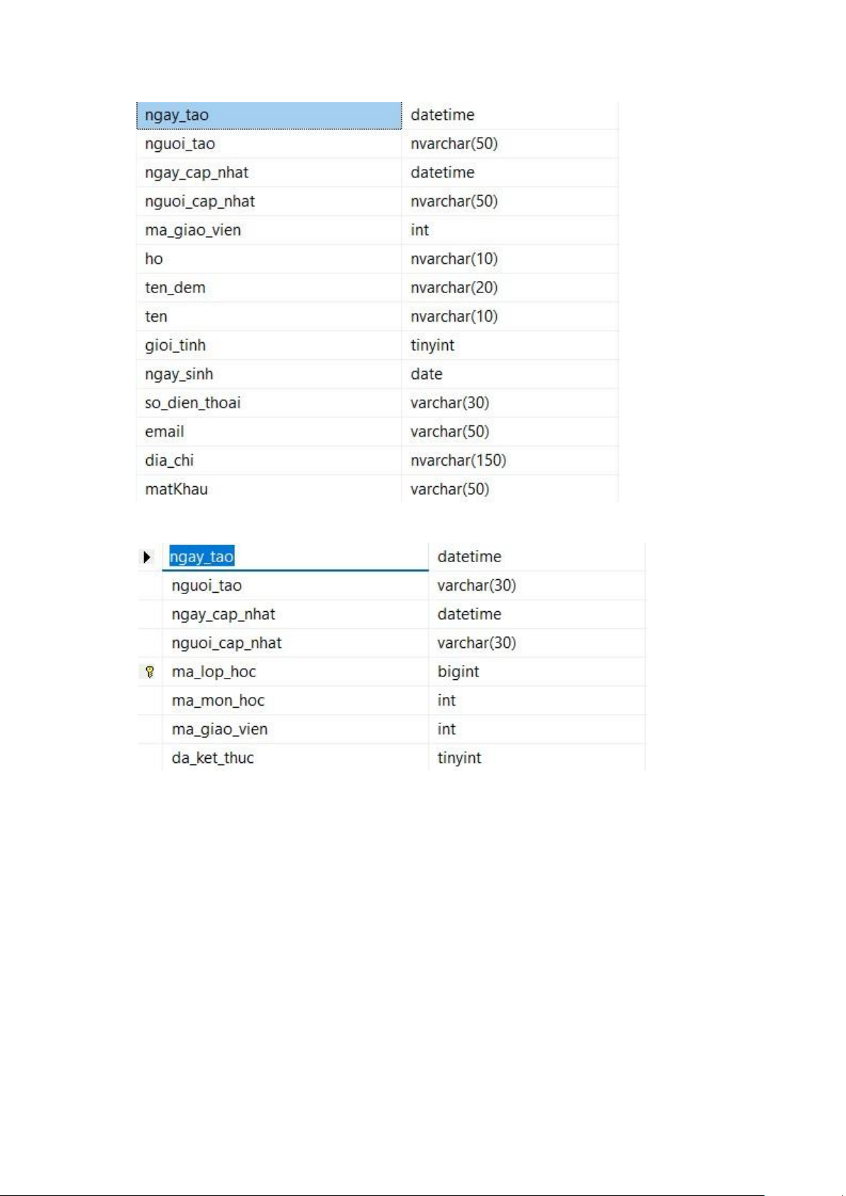 Gồm những chi tiết của giáo viên: mã giáo viên, họ, tên đệm, tên, giới tính,