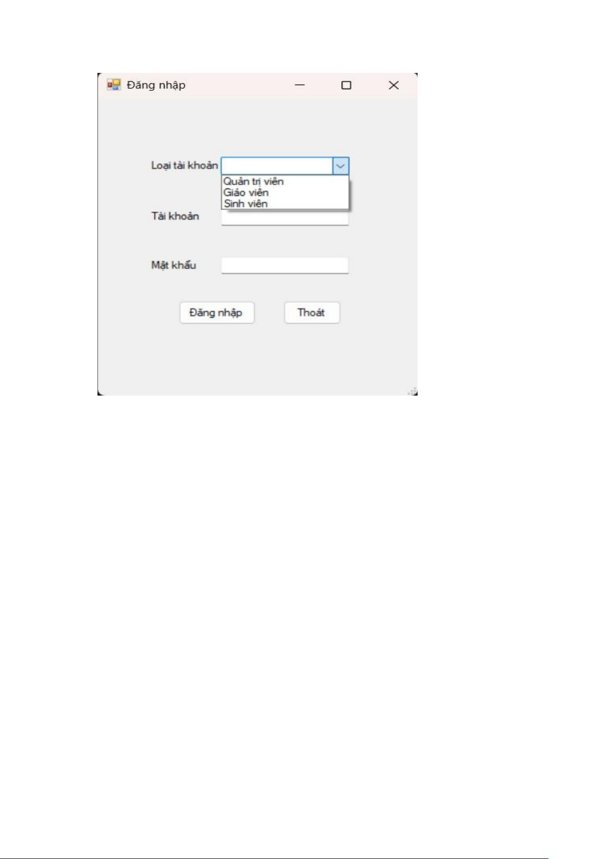 mật khẫu mặc định ban đầu là 123, loại tài khoản sinh viên cũng tương tự như giáo viên. lOMoAR cPSD| 60755984