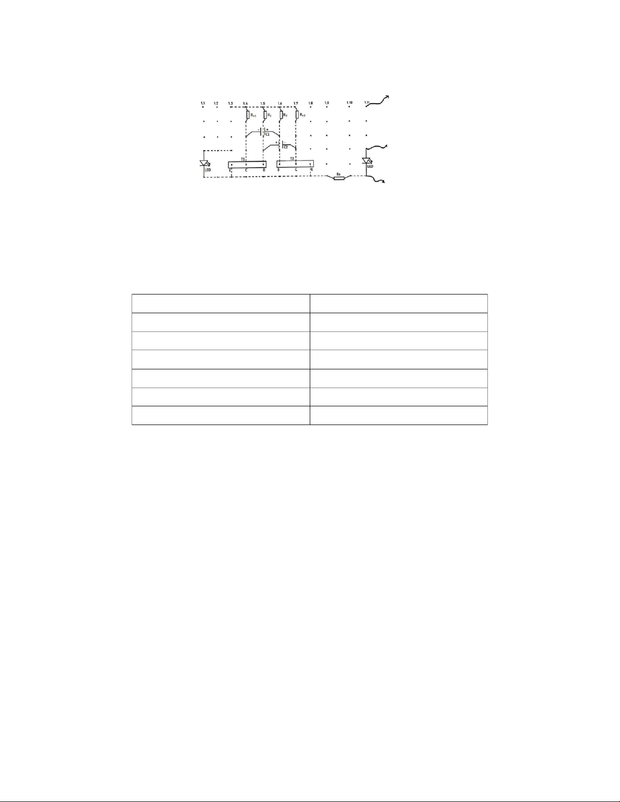 liên tục của 2 đèn bán dẫn T1 và T2. 2.1.3. Các linh kiện Tên linh kiện Chỉ số Điện trở(Rc1, Rc2) 10 (kΩ) Điện trở(Rb1, Rb2) 100 (kΩ) Tụ điện(C1, C2) 10 (uF) Điện trở(Re) 10 (Ω) Đèn LED(D1, D2) Transitor(T1, T2) C828 2.1.3.1. Transistor