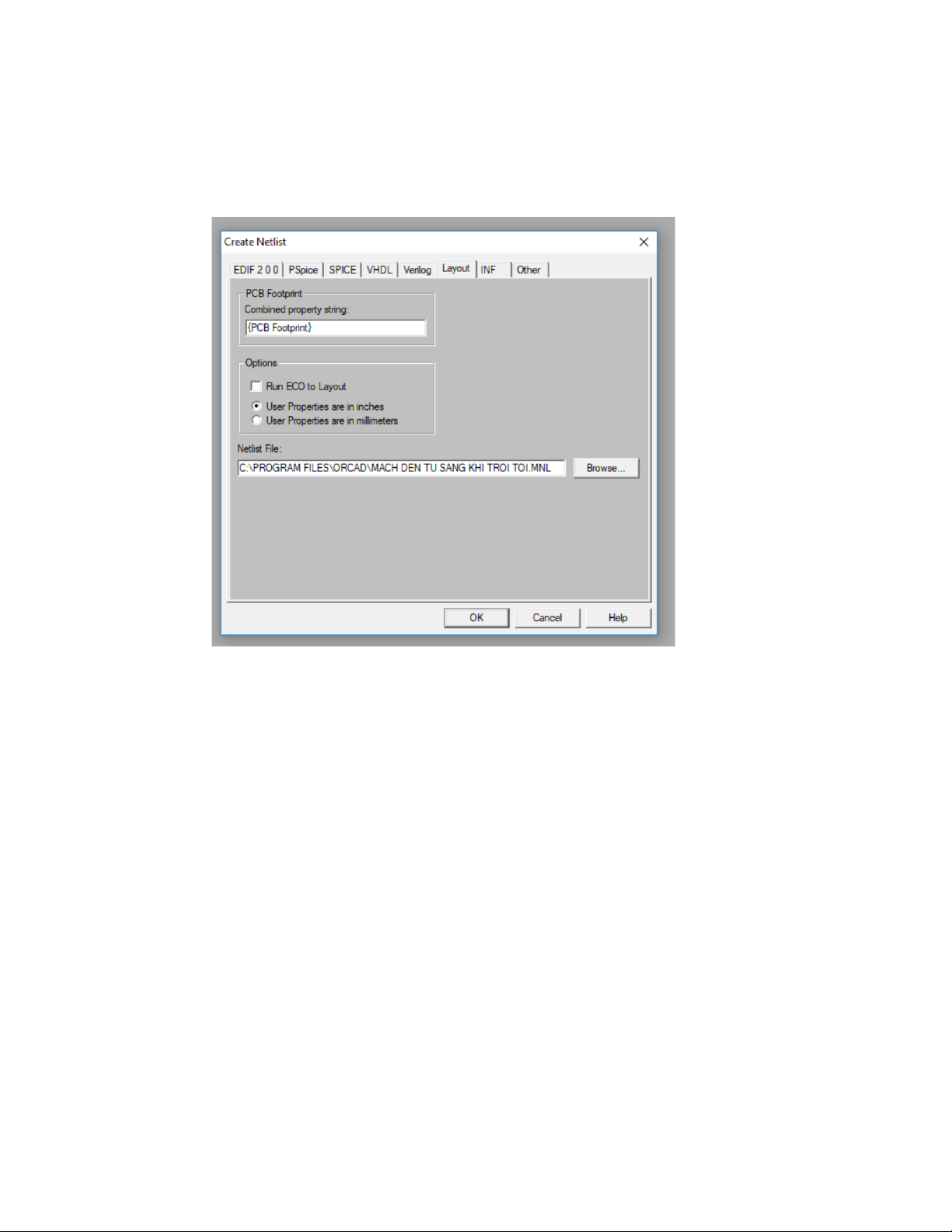 User Properties are in inches và ấn OK để hoàn thiện file netlist