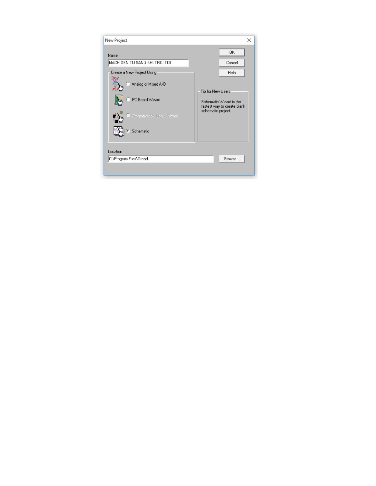 Schematic ở phần Creat a New Project Using, tiếp theo