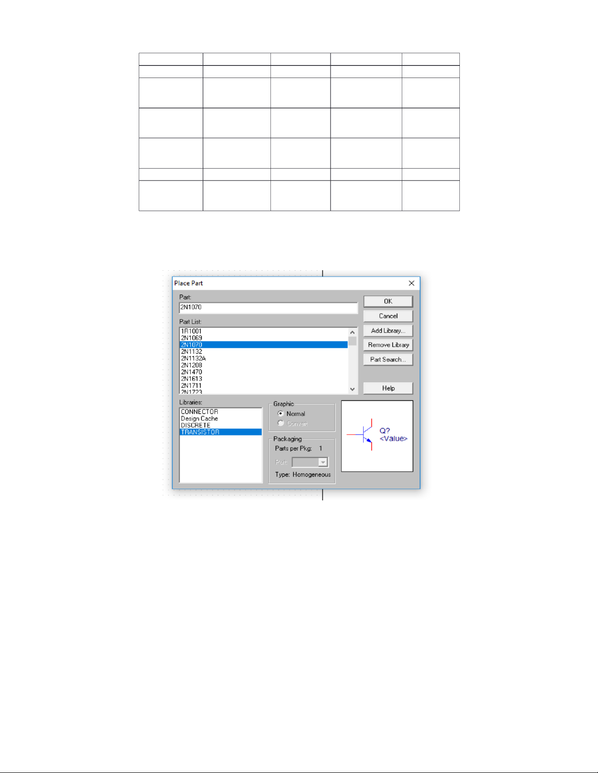 Bảng 1: Lựa chọn linh kiện trong thư viện