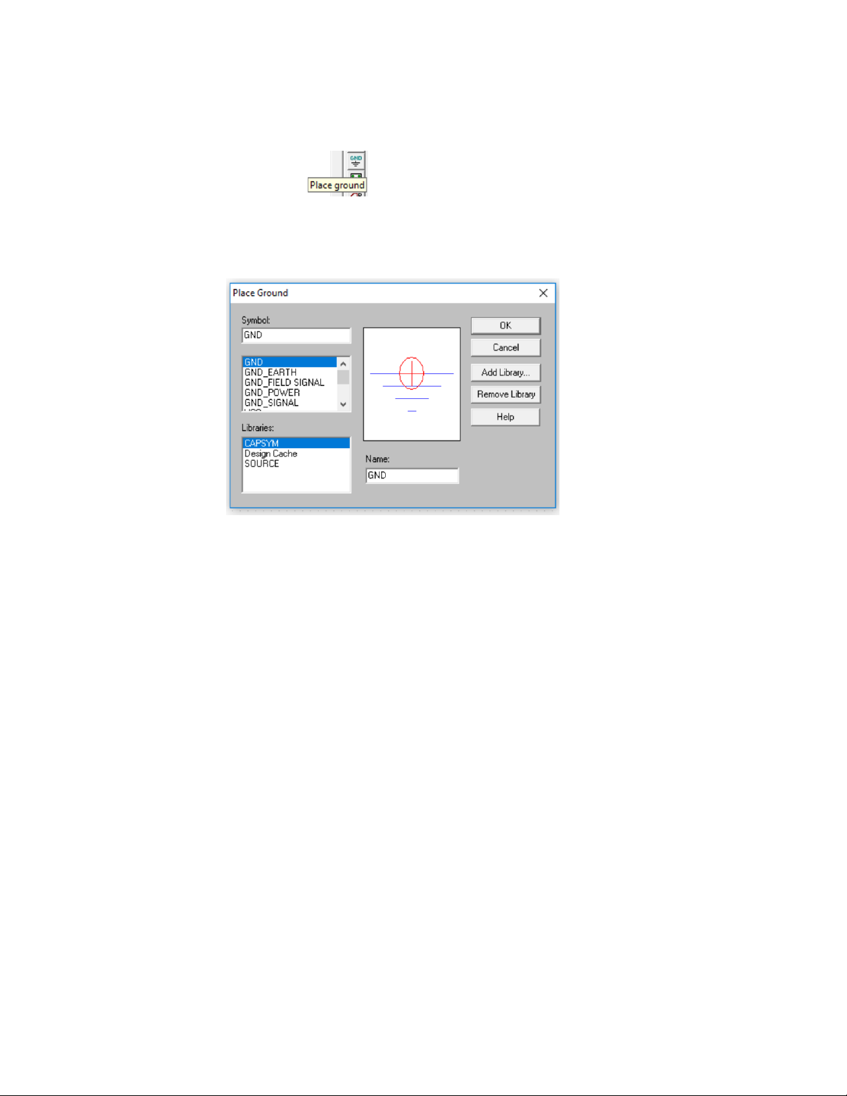 Tìm 2 chân GND và VCC trong thư viện CAPSYM