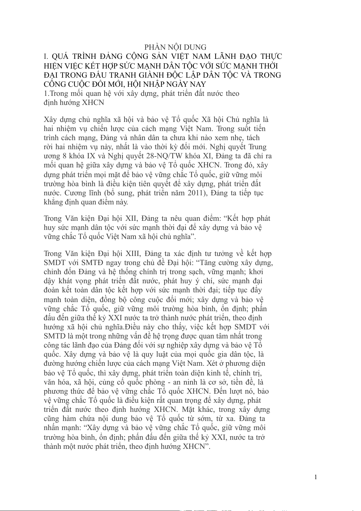 1.Trong mối quan hệ với xây dựng, phát triển đất nước theo định hướng XHCN