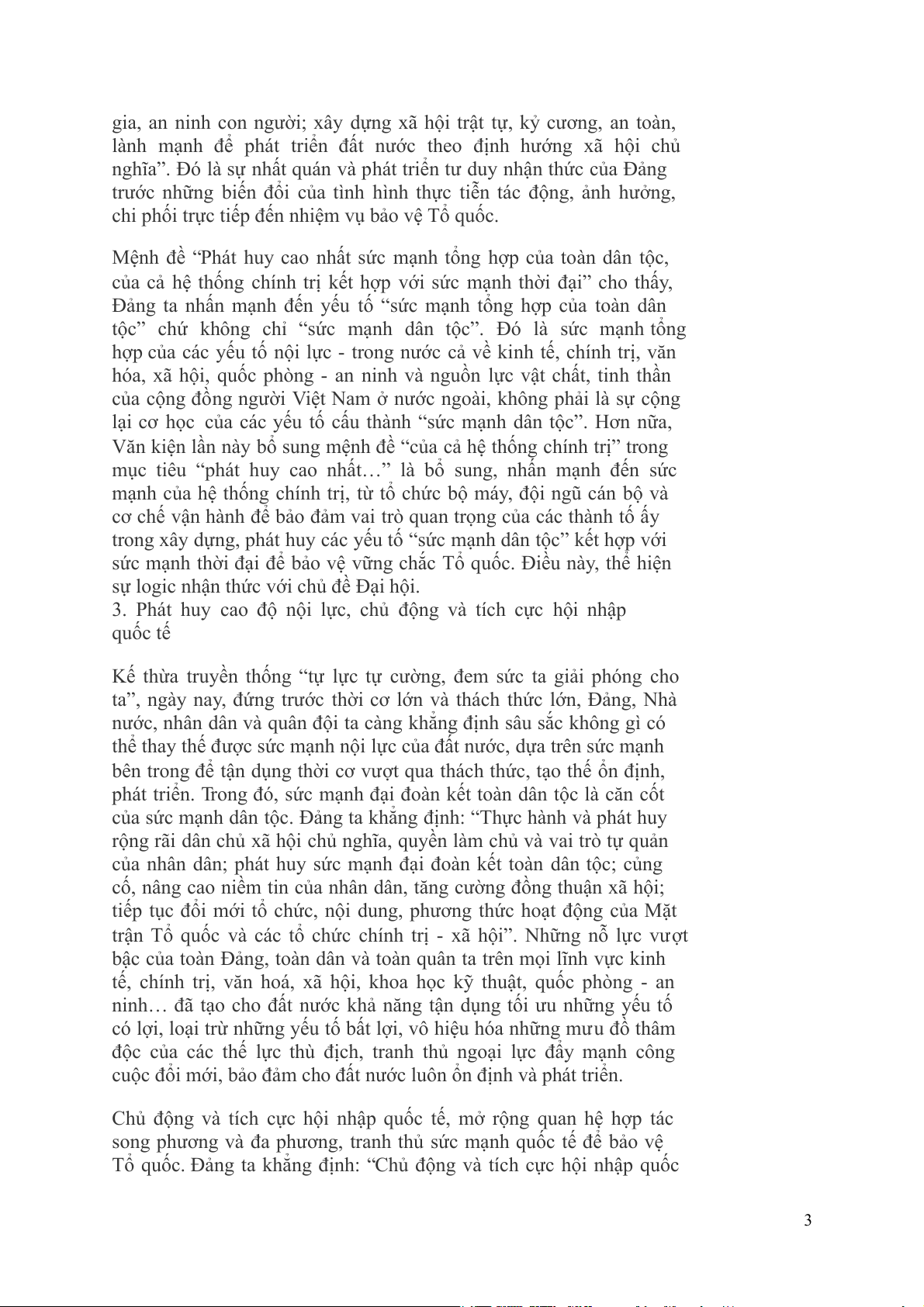 3. Phát huy cao độ nội lực, chủ động và tích cực hội nhập quốc tế………………3