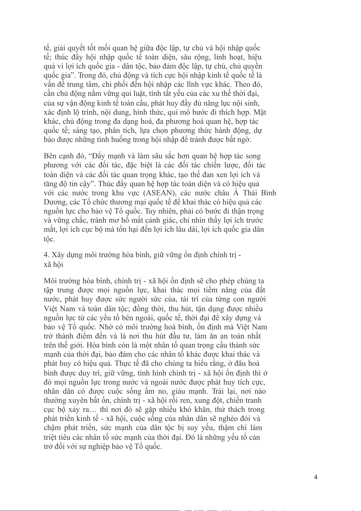 4. Xây dựng môi trường hòa bình, giữ vững ổn định chính trị - xã hội