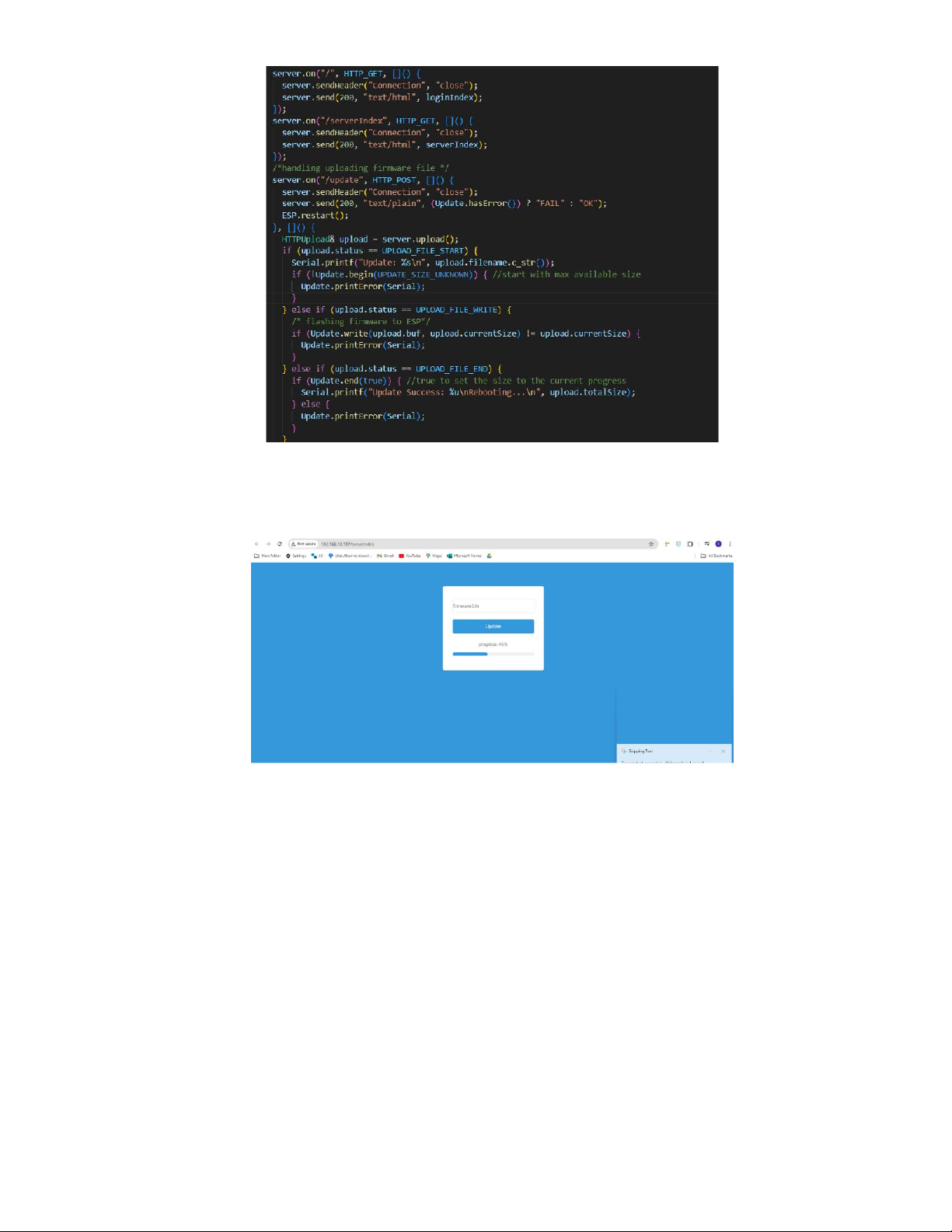 Để nạp Firmware vào ESP32, ta sử dụng các thư viện Update với các hàm