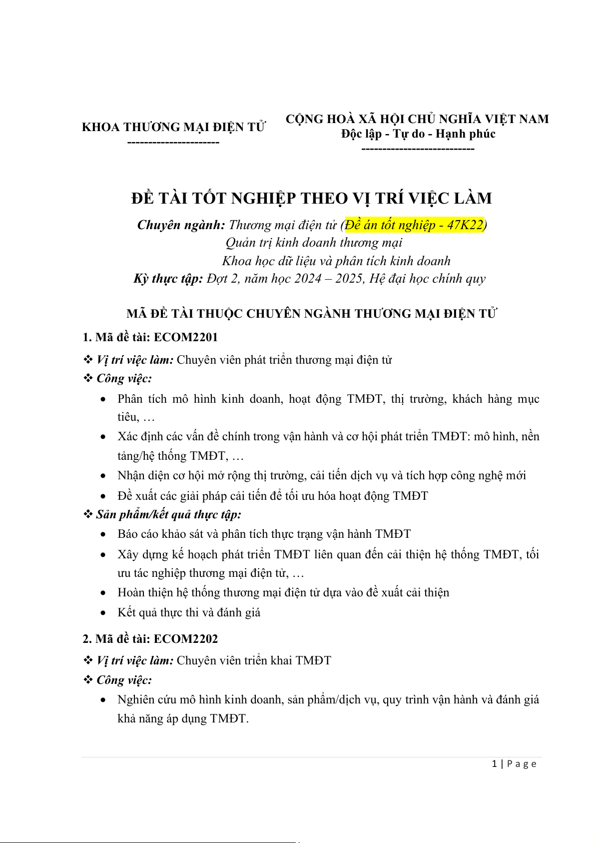 Chuyên ngành: Thương mại điện tử (Đề án tốt nghiệp - 47K22)