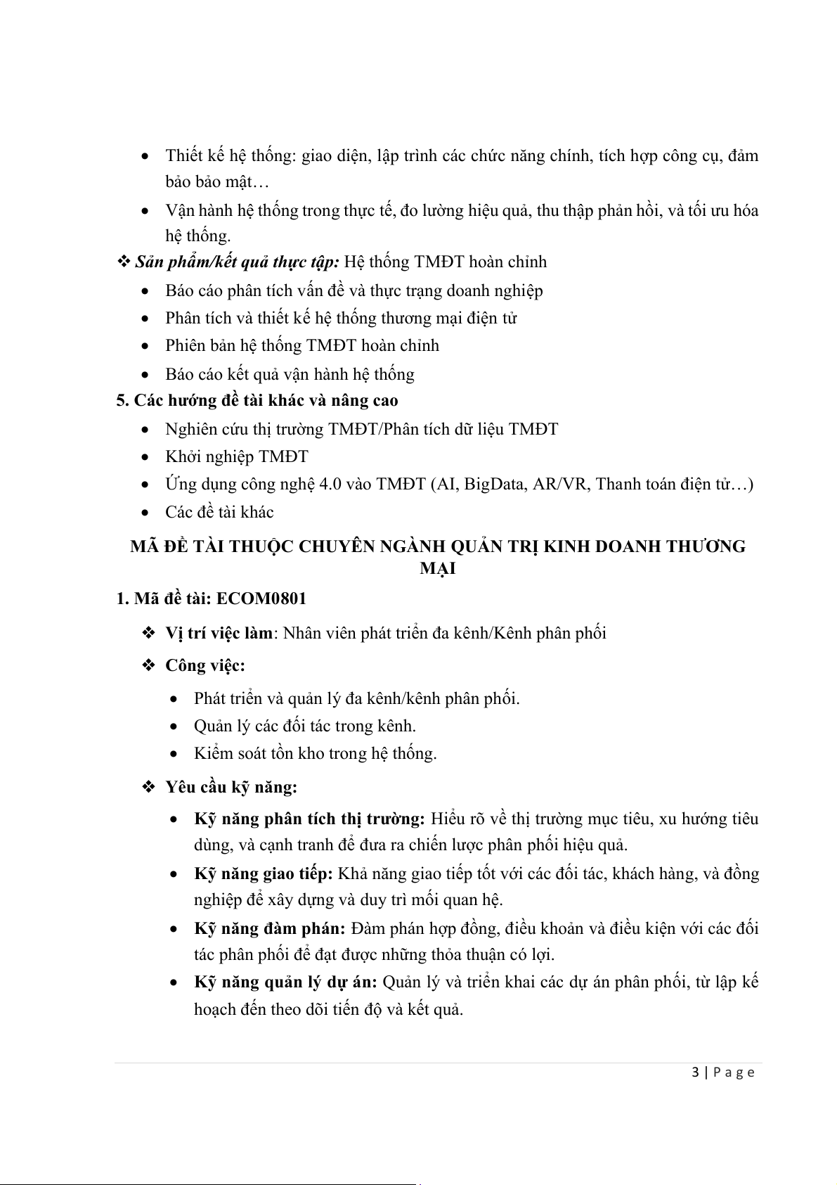 Sinh viên có thể đề xuất các hướng đề tài khác thuộc chuyên ngành thương mại điện