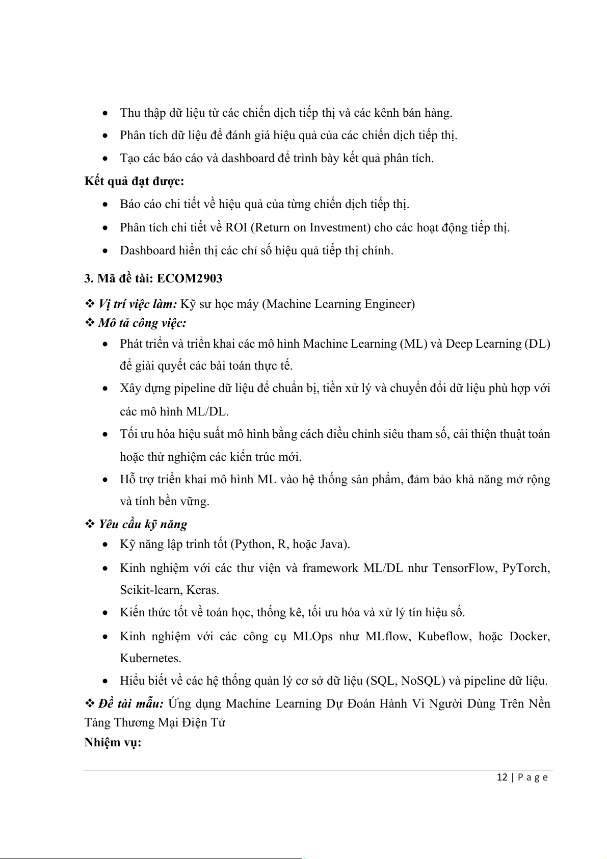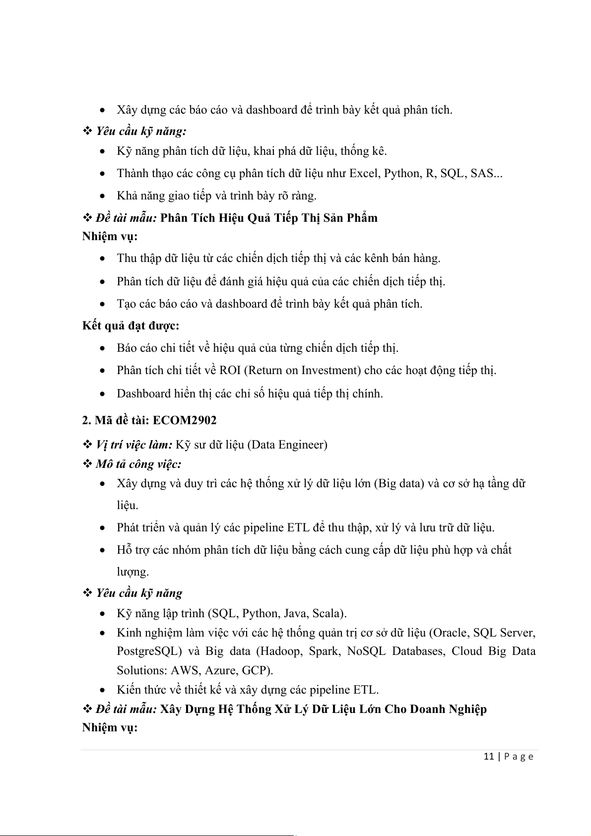 • Nghiên cứu thị trường TMĐT/Phân tích dữ liệu TMĐT • Khởi nghiệp TMĐT