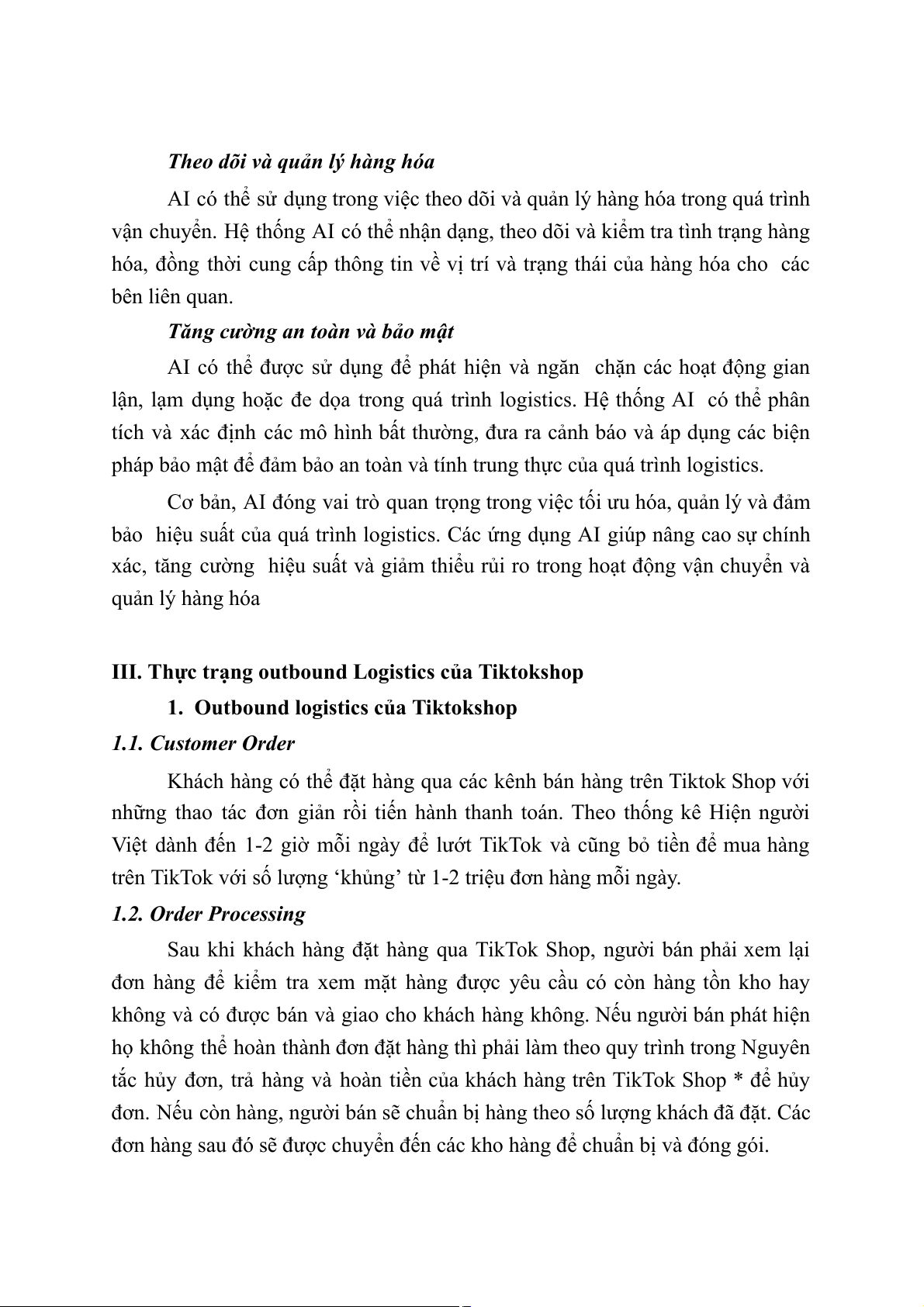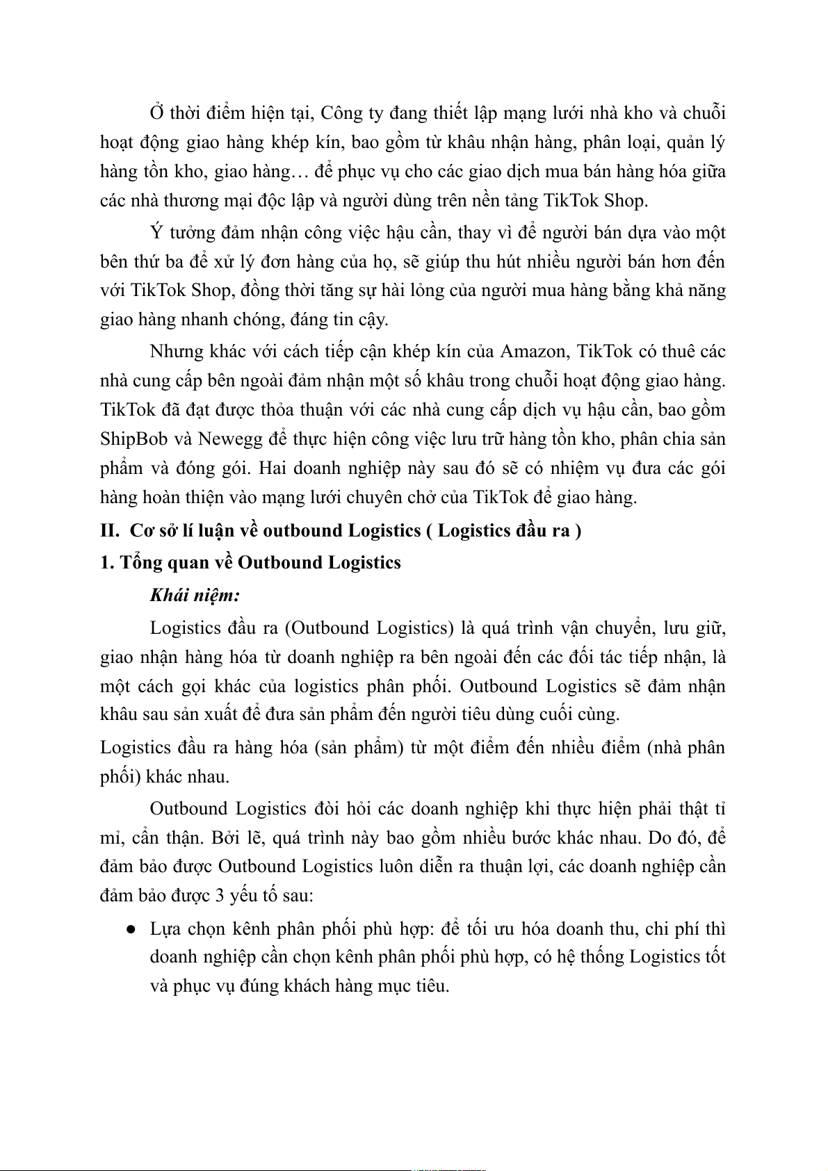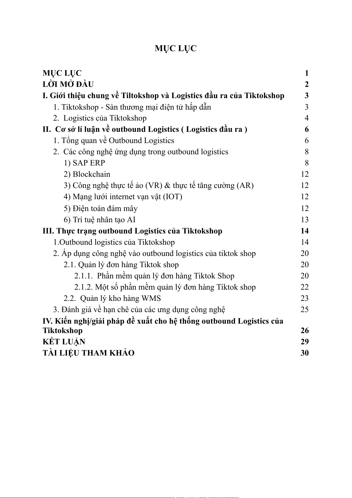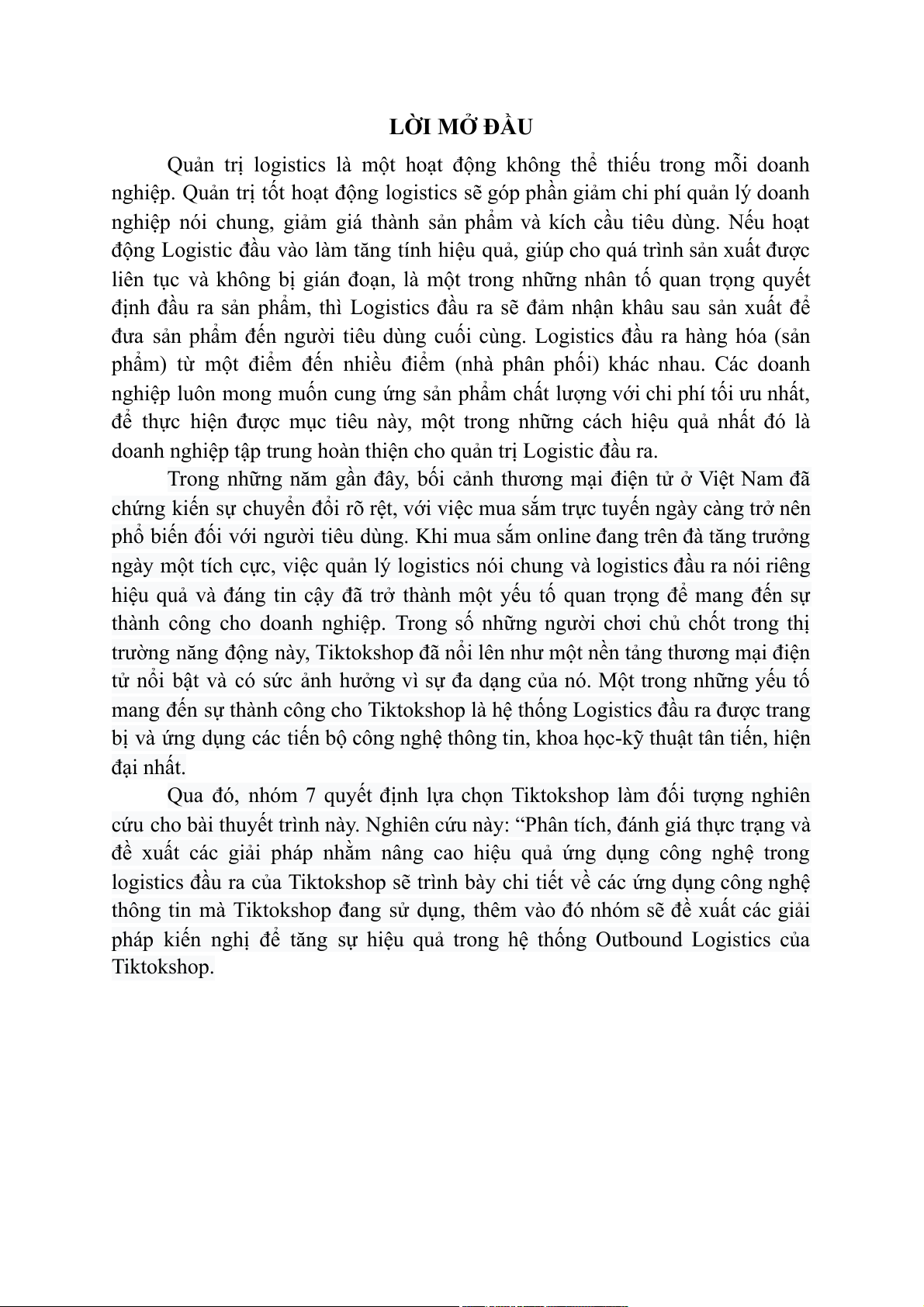 IV. Kiến nghị/giải pháp đề xuất cho hệ thống outbound Logistics của Tiktokshop 26 KẾT LUẬN 29