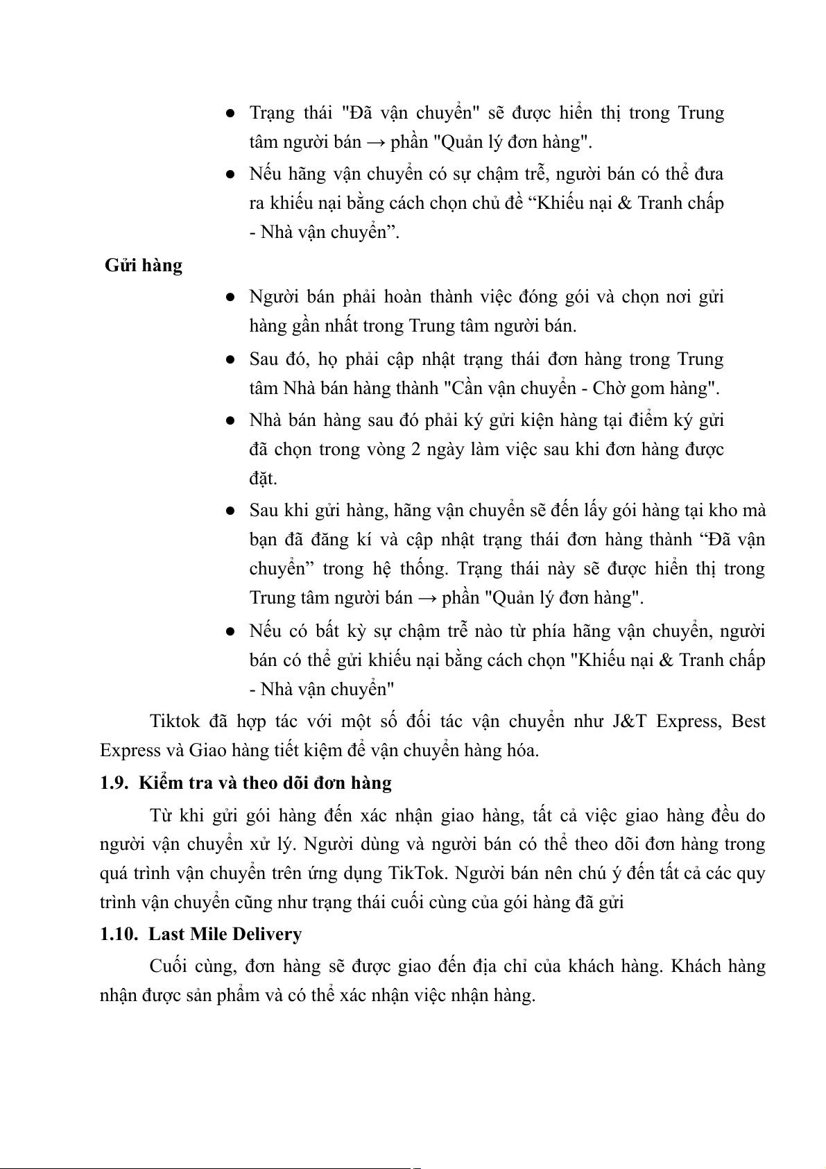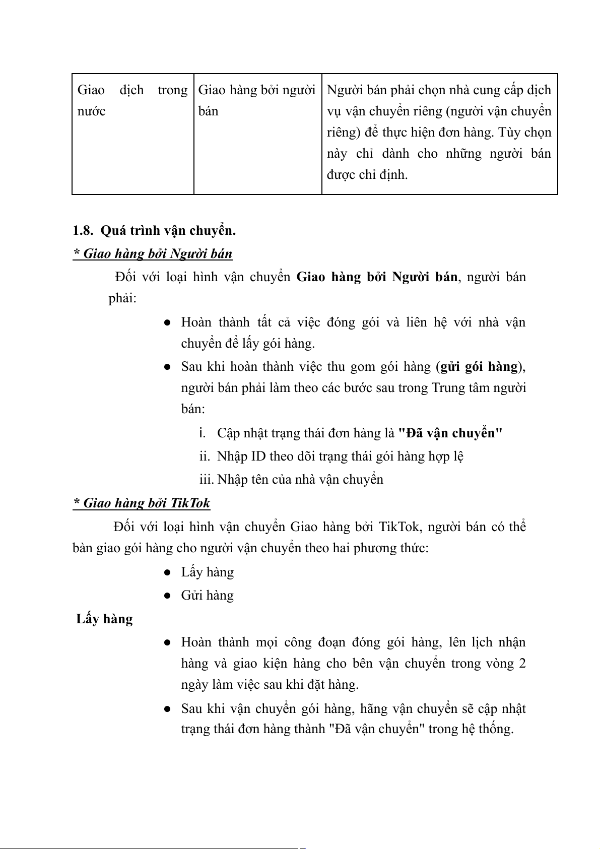 quá trình vận chuyển trên ứng dụng TikTok. Người bán nên chú ý đến tất cả các quy