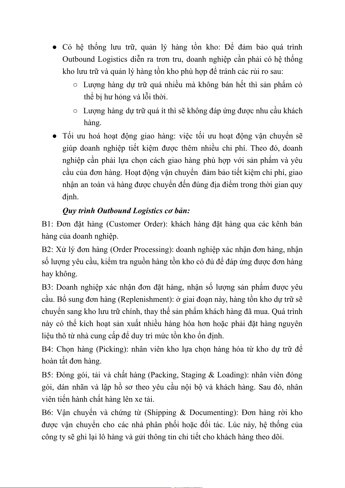 II. Cơ sở lí luận về outbound Logistics ( Logistics đầu ra ) 6