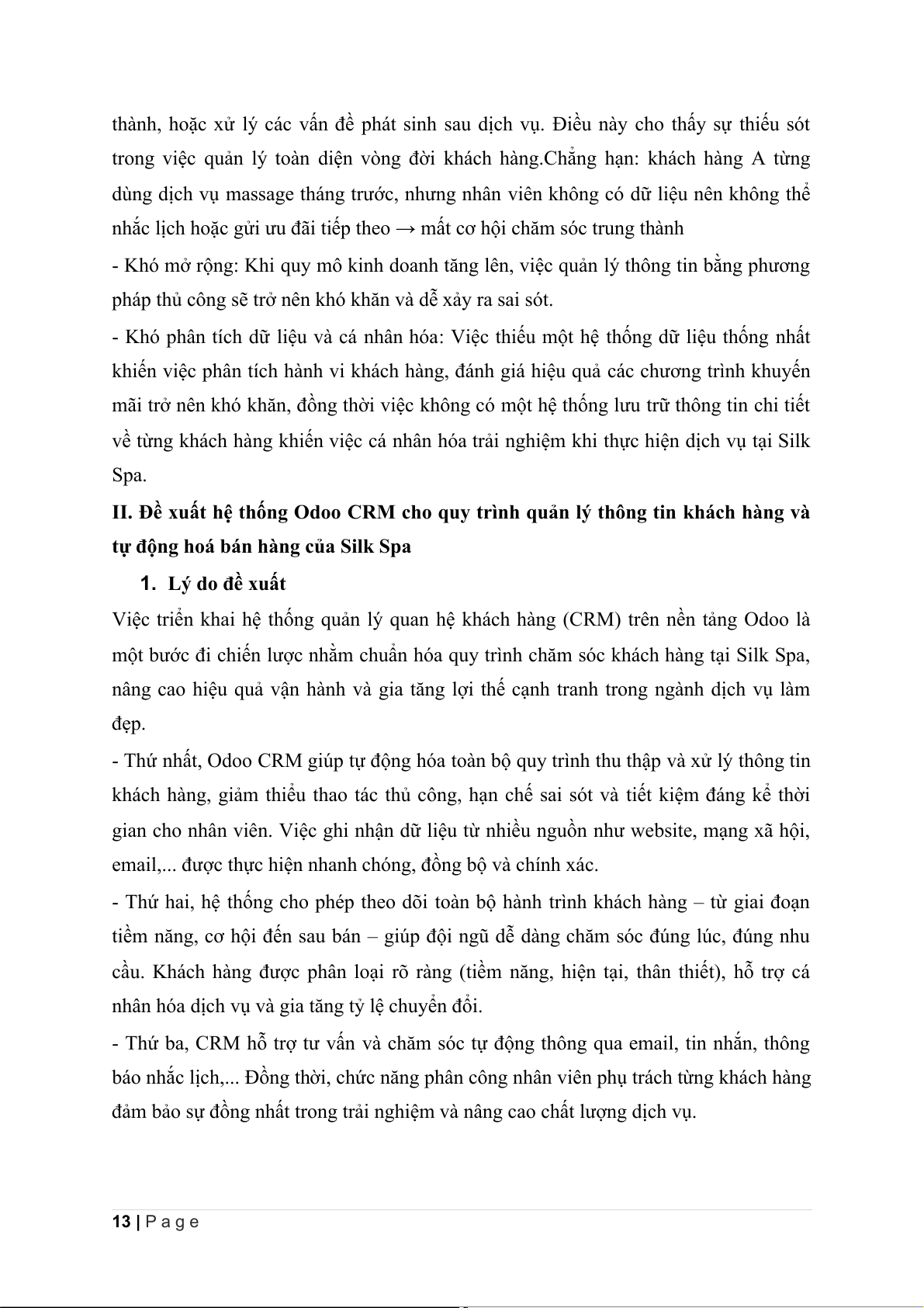 CHƯƠNG 3. TRIỂN KHAI HỆ THỐNG ODOO CRM TẠI SILK SPA……… 18