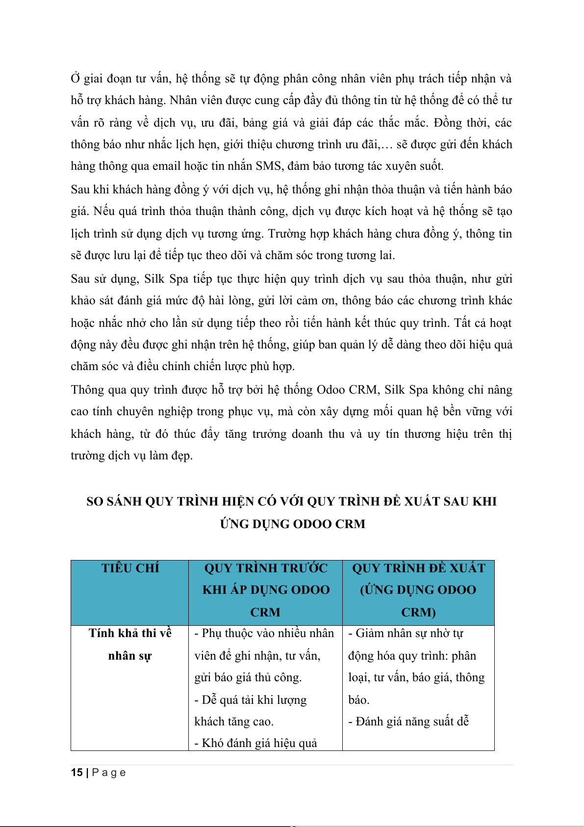 SO SÁNH QUY TRÌNH HIỆN CÓ VỚI QUY TRÌNH ĐỀ XUẤT SAU KHI ỨNG DNG ODOO CRM TIÊU CHÍ QUY TRÌNH TRƯỚC QUY TRÌNH ĐỀ XUẤT KHI ÁP DNG ODOO (ỨNG DNG ODOO CRM CRM) Tính khả thi về