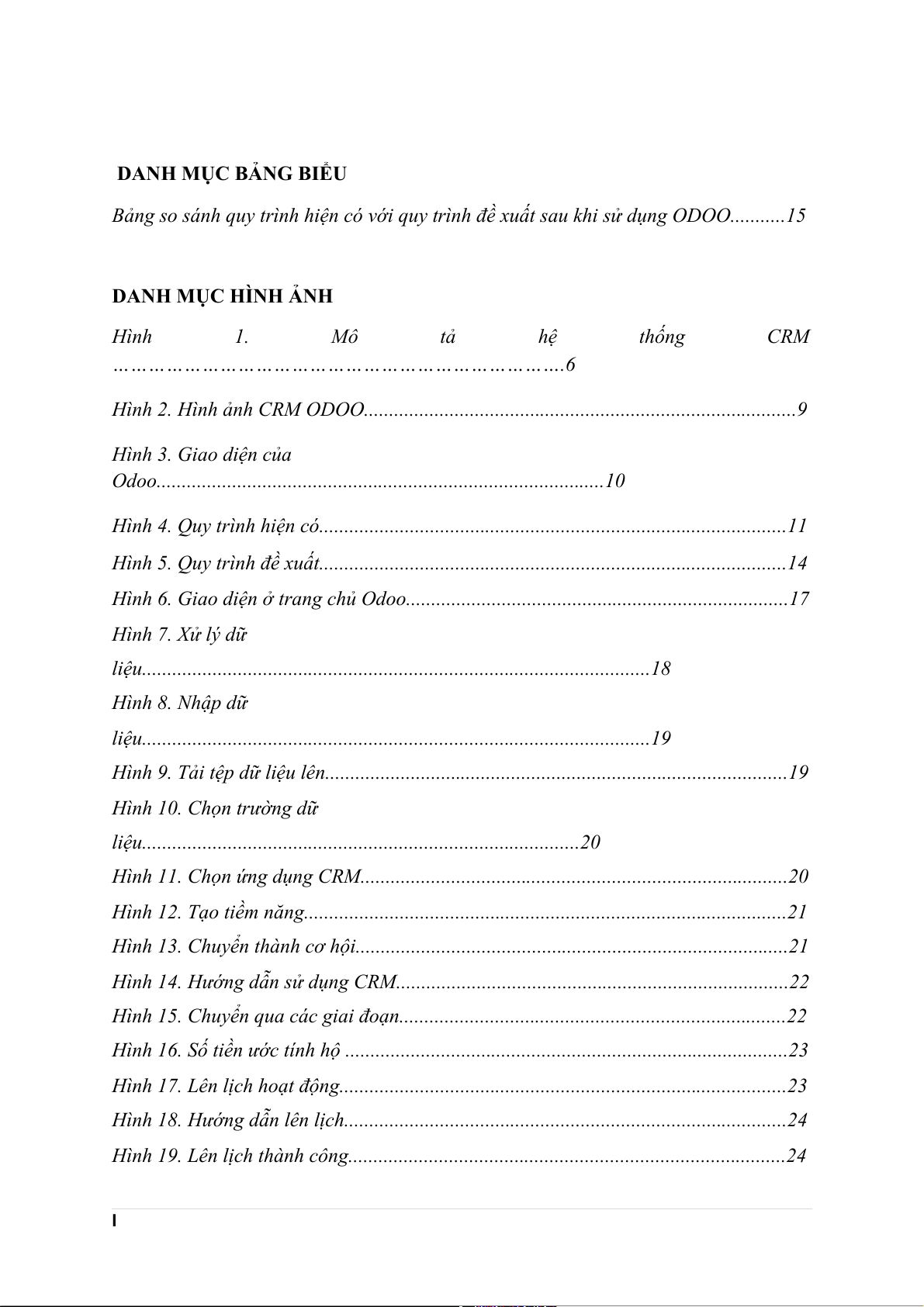 Bảng so sánh quy trình hiện có với quy trình đề xuất sau khi sử dụng ODOO...........15 DANH MC HÌNH ẢNH Hình 1. Mô tả hệ thống CRM
