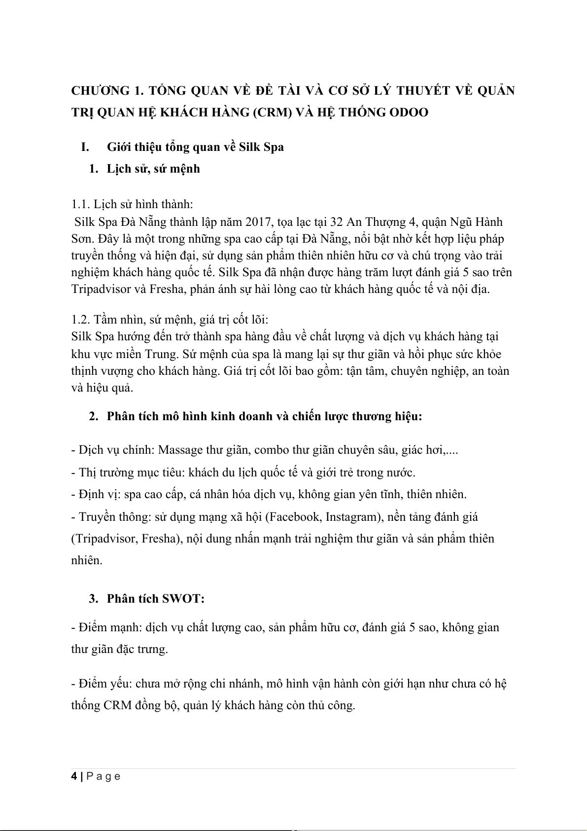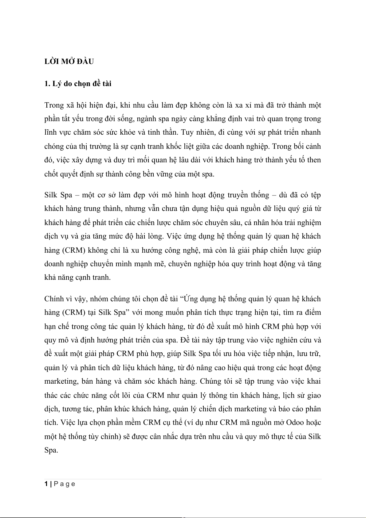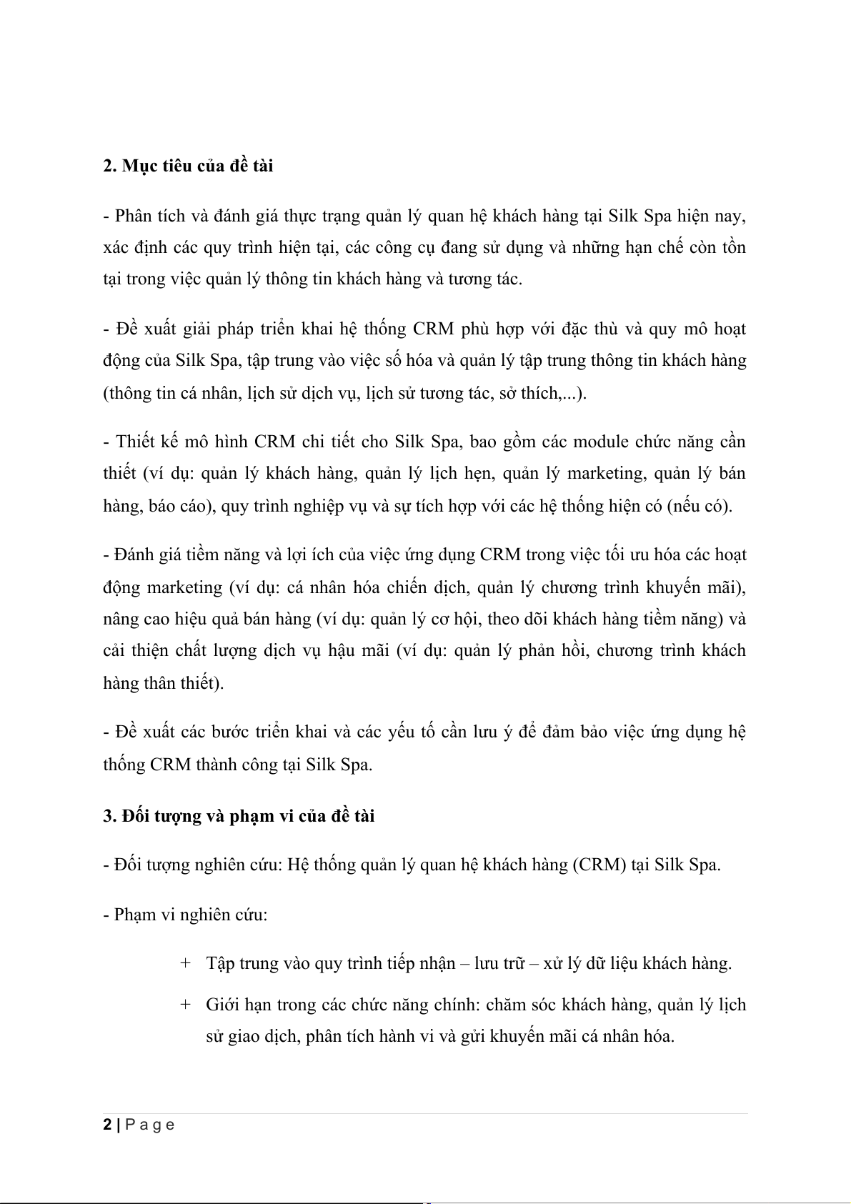 hàng (CRM) tại Silk Spa” với mong muốn phân tích thực trạng hiện tại, tìm ra điểm