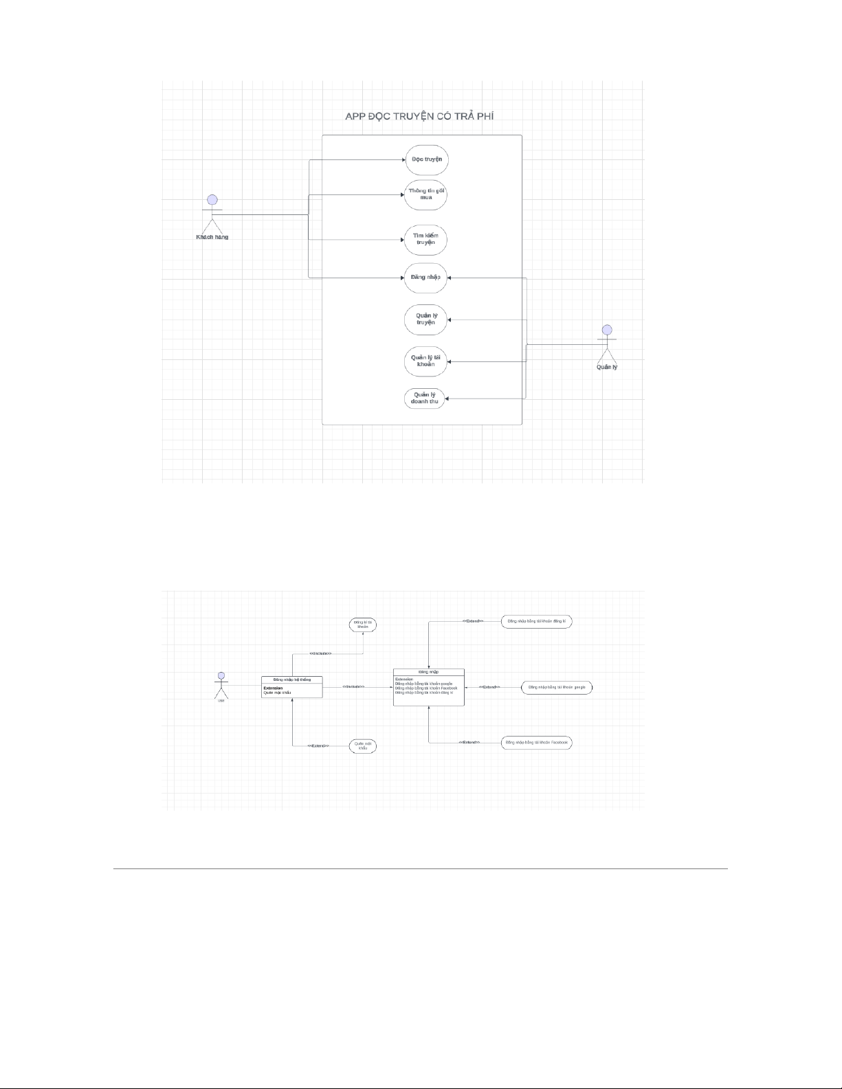 - Phân tích thiết kế hệ thống xây dựng app dọc truyện có trả phí: Quản lý Truyện Quản lý Tài Khoản Quản lý giao dịch