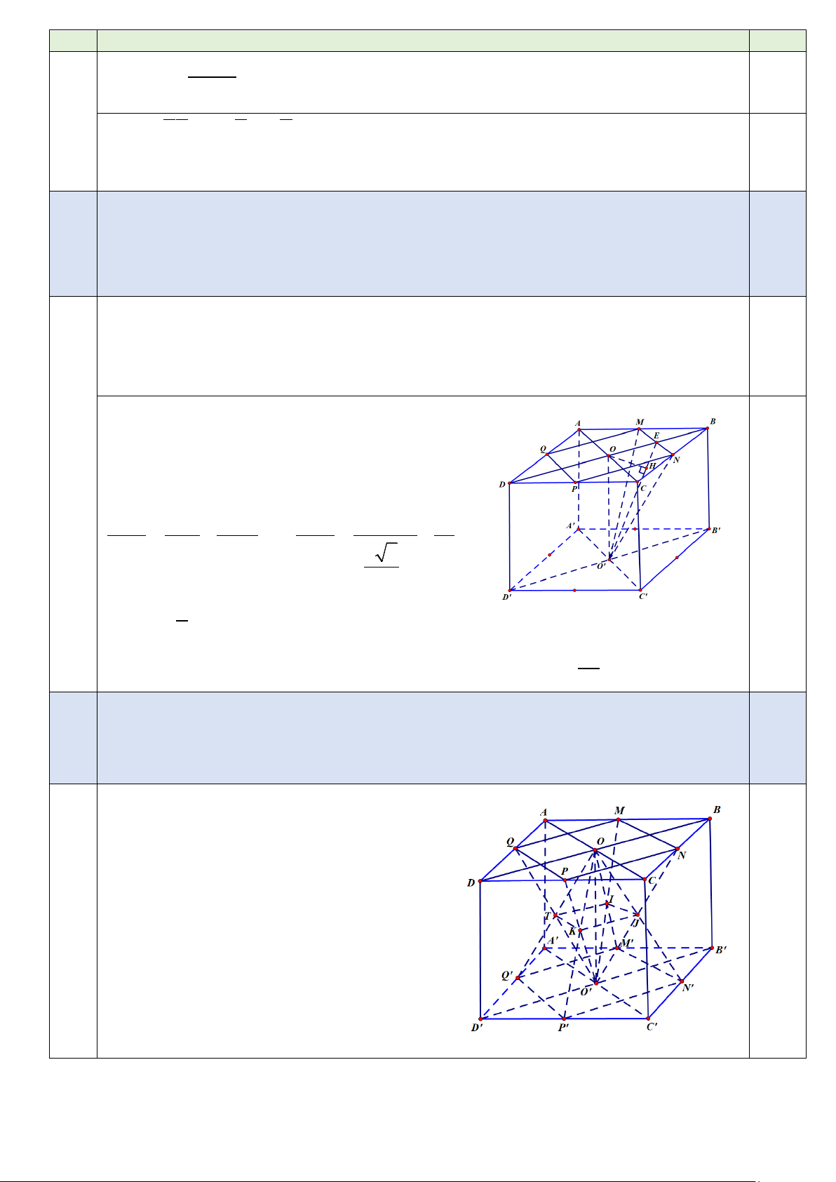 mặt khác A'C ' ⊥ B'D' nên tứ giác IJKT là hình vuông cạnh a 2 4 2 - Thể tích khối chóp . O IJKT là 1 a a 2 a 2 V = = và cùng V O IJKT . . . 3 2 4 24 O '.IJKT 2 a 2