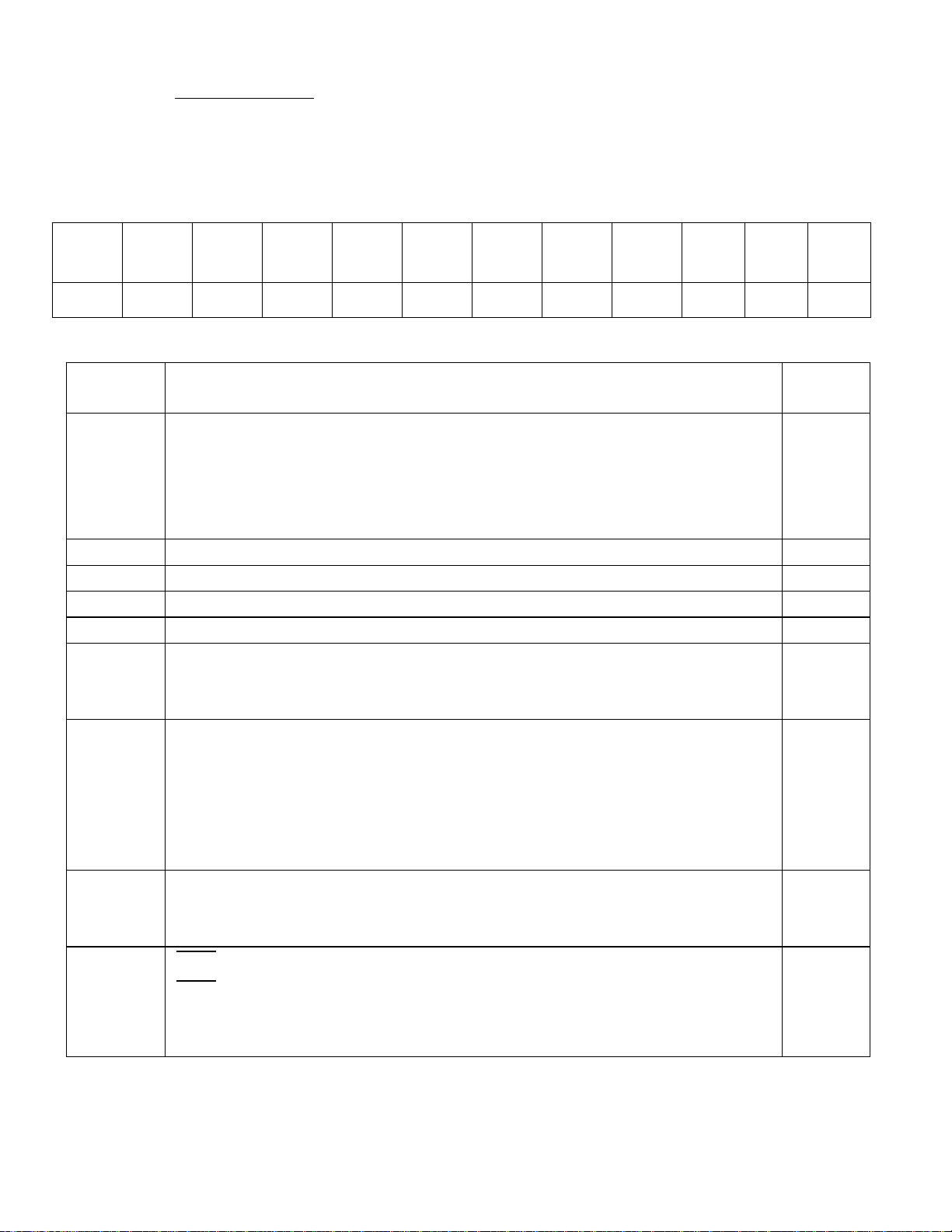 A.TRẮC NGHIỆM: (3,0 điểm) Mỗi phương án chọn đúng ghi 0,25 điểm. Câu 1 2 3 4 5 6 7 8 9 10 11 12 Đ/án A C C D D B A A D A B B