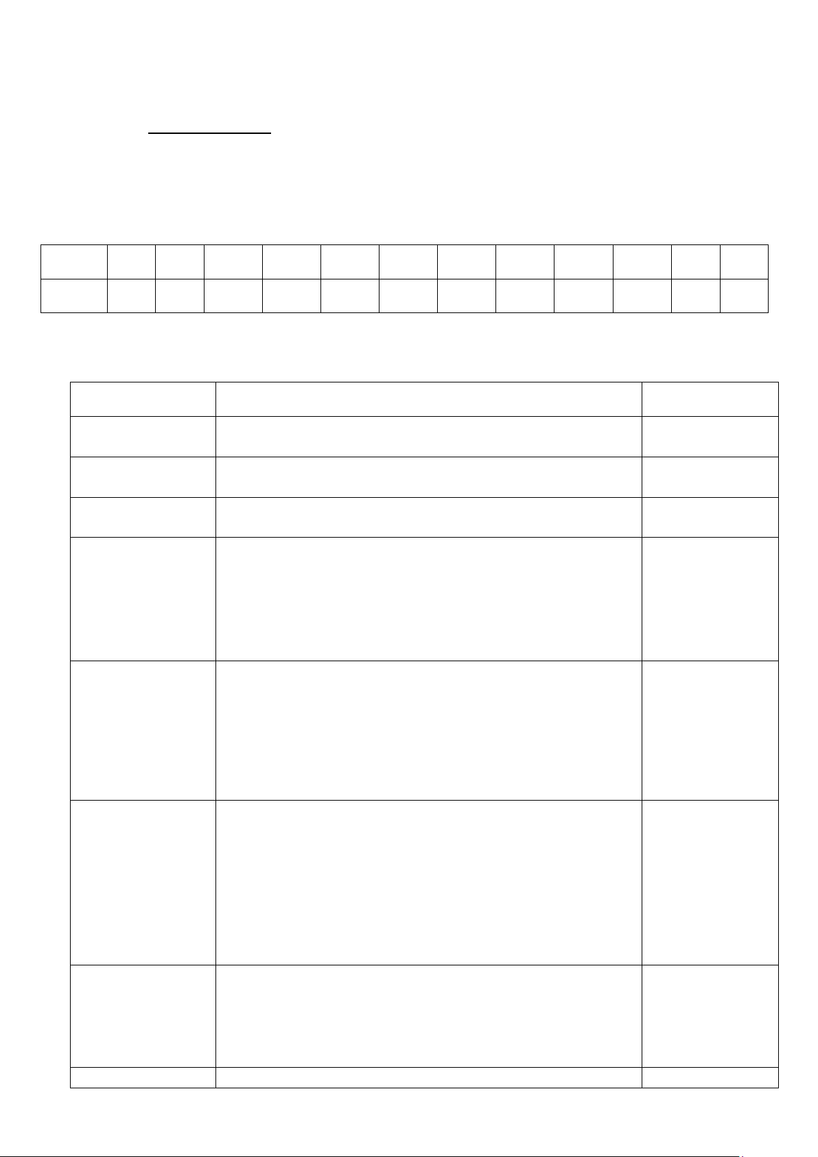 I. TRẮC NGHIỆM: (3,0 điểm) (0,25x12)