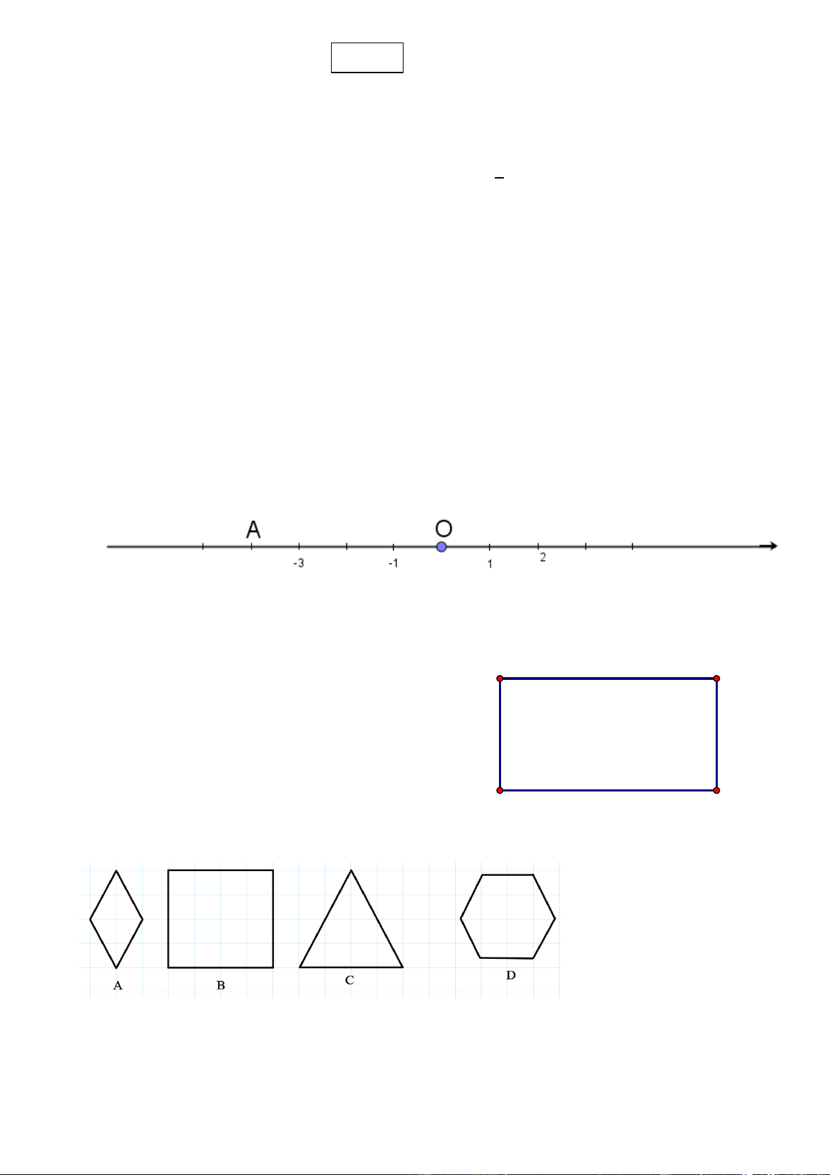 Câu 4. Điểm A trong hình dưới đây biểu diễn số nguyên nào? A. 3 B. 4 C. – 4 D. – 5 Câu 5.