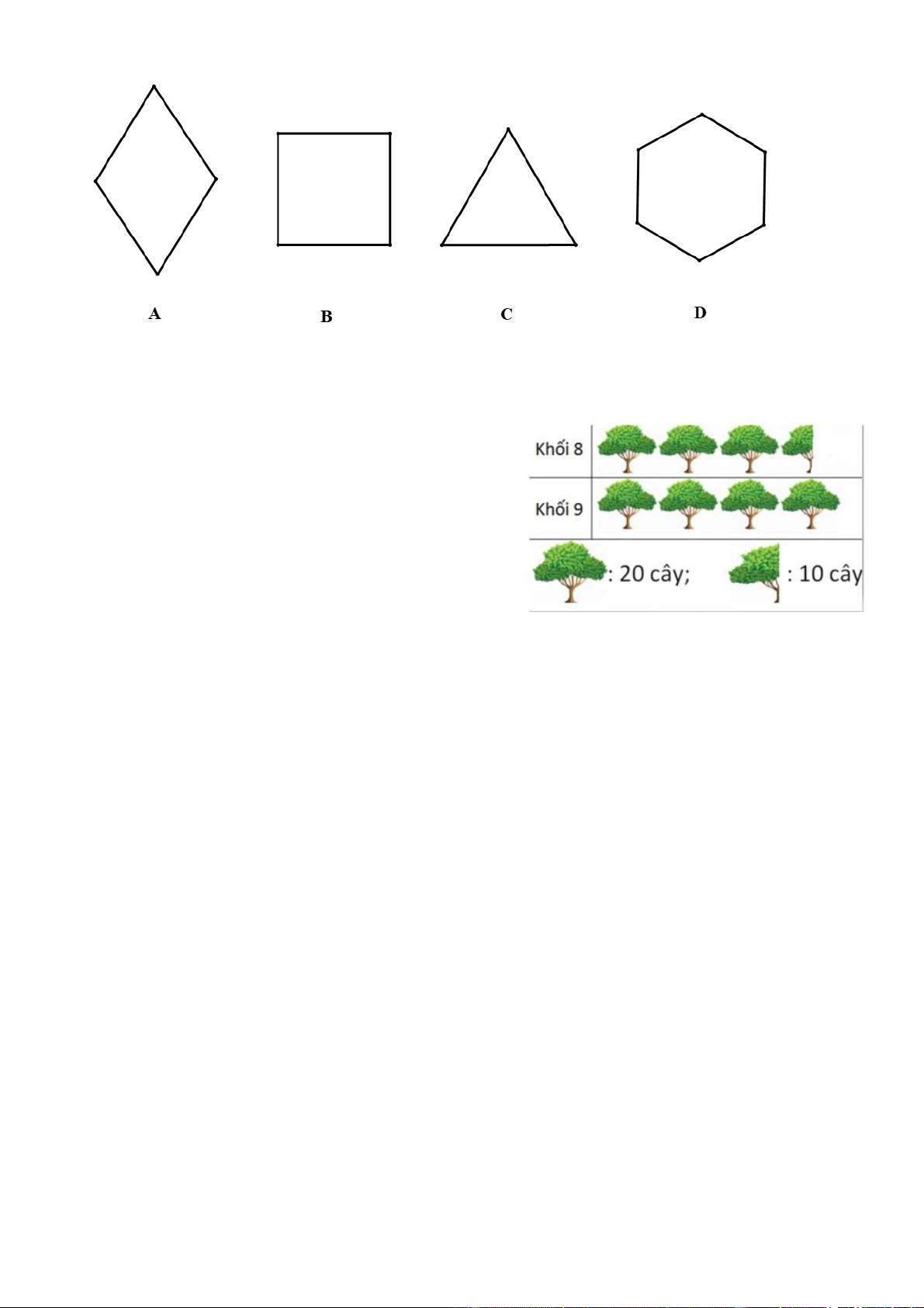 Câu 7 Trong các hình sau, hình nào là hình vuông: A. Hình A B. Hình B C. Hình C D. Hình D Câu 8.
