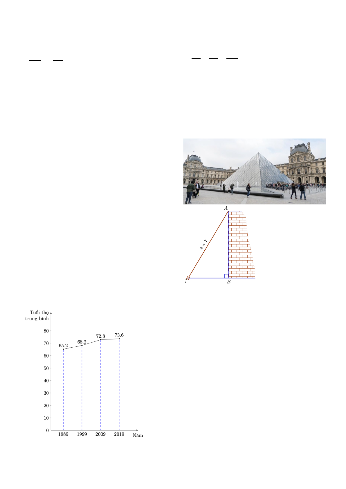 Bài 7. (0,5 điểm) Biểu đồ đoạn thẳng trong hình dưới biểu diễn tuổi thọ trung bình của người Việt
