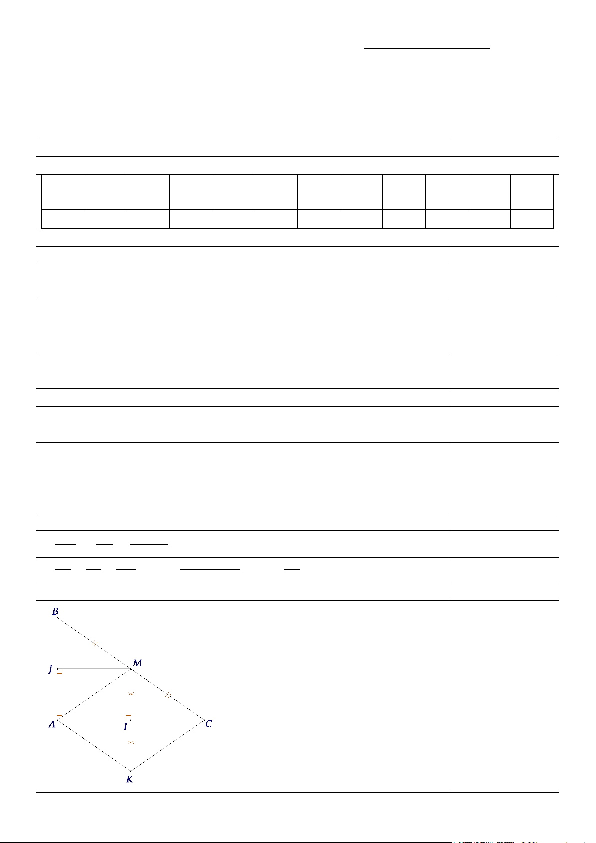 Bài 4. (1,5 điểm) Cho ΔABC vuông tại A có M là trung điểm của BC. Từ M kẻ MJ ⊥ AB và MI ⊥ AC