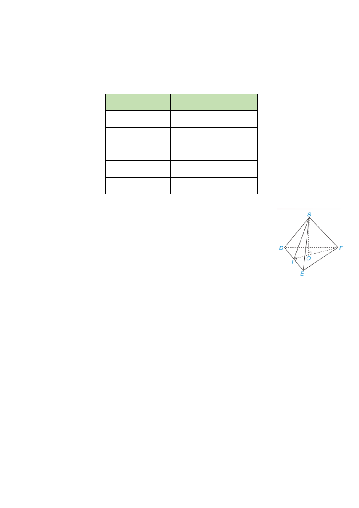 Câu 8 (NB). Mặt bên của hình chóp tam giác đều là hình gì? A. Tam giác vuông cân. C. Tam giác vuông. B. Tam giác cân. D. Tam giác đều.