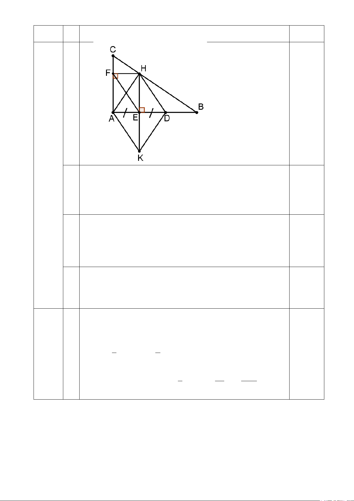 Ta có: AI2 = AB2 + BI2 (Pythagore) 0,25 ⇒ AI2 = 3,82 + 1,22 0,25 ⇒ AI2 = 15,88 ⇒ AI = �15,88 ≈ 4,0 (m) 0,25