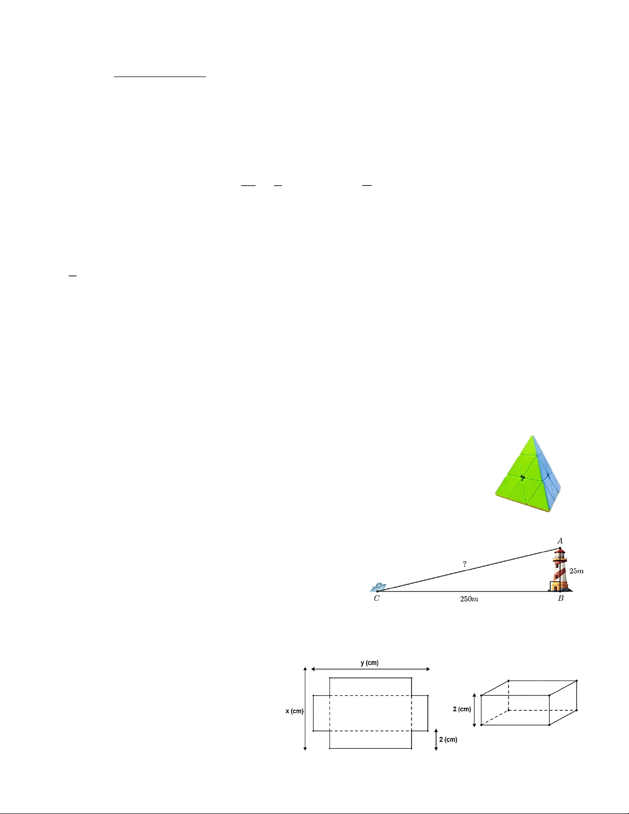 Bài 5. (1,0 điểm) Tính thể tích khối rubik có dạng hình chóp tam giác đều. Biết