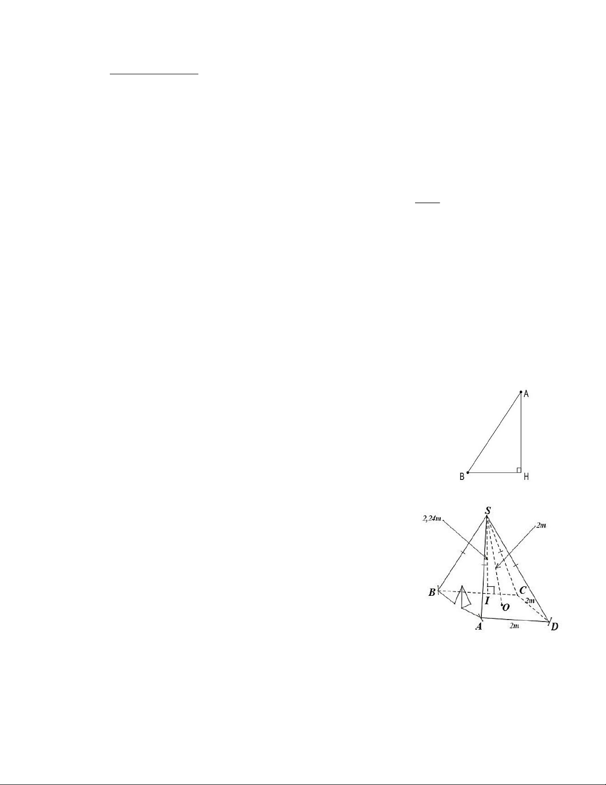 Bài 5. (0,75 điểm) Một mái che có dạng hình chóp tứ giác đều với độ dài cạnh đáy BC là 1,8 m và