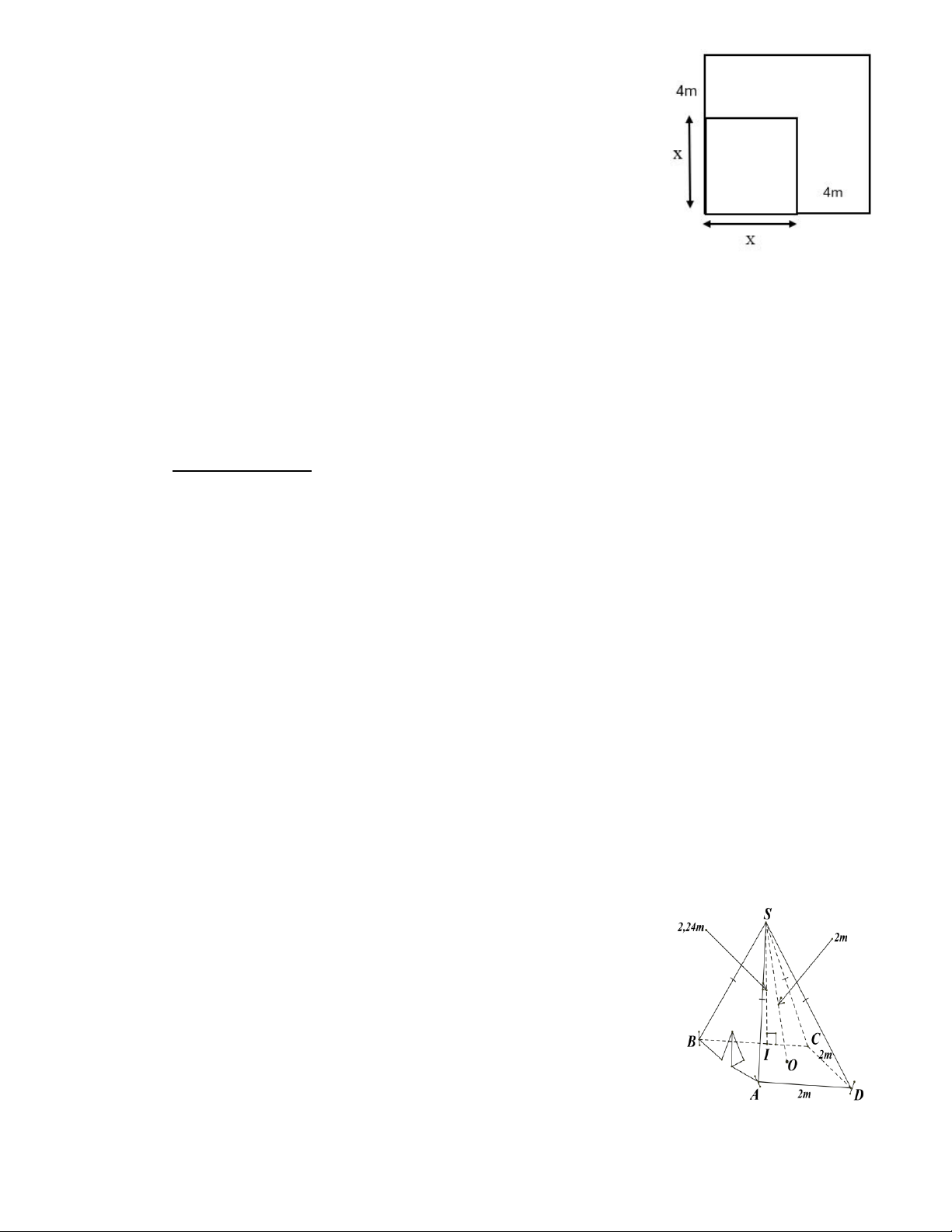 Bài 5. (0,75 điểm) Một mái che giếng trời có dạng hình chóp tứ giác
