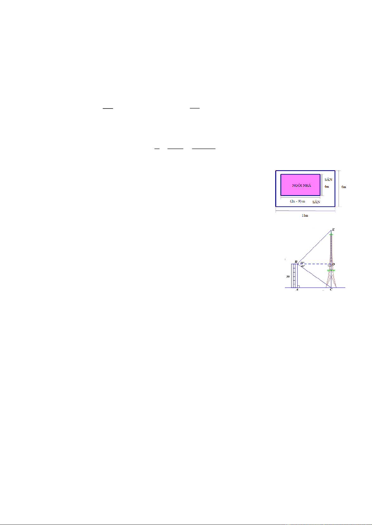 b) Tính chiều dài ngôi nhà biết diện tích sân vườn là 2 22m .