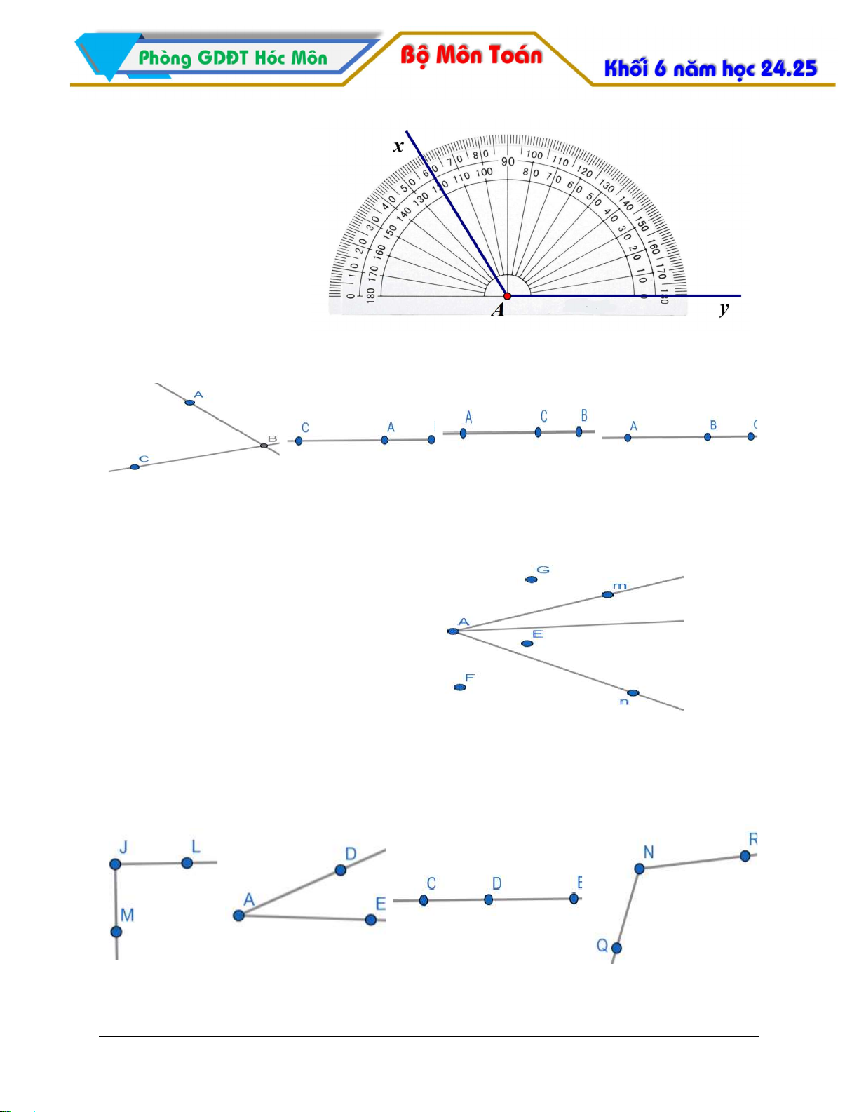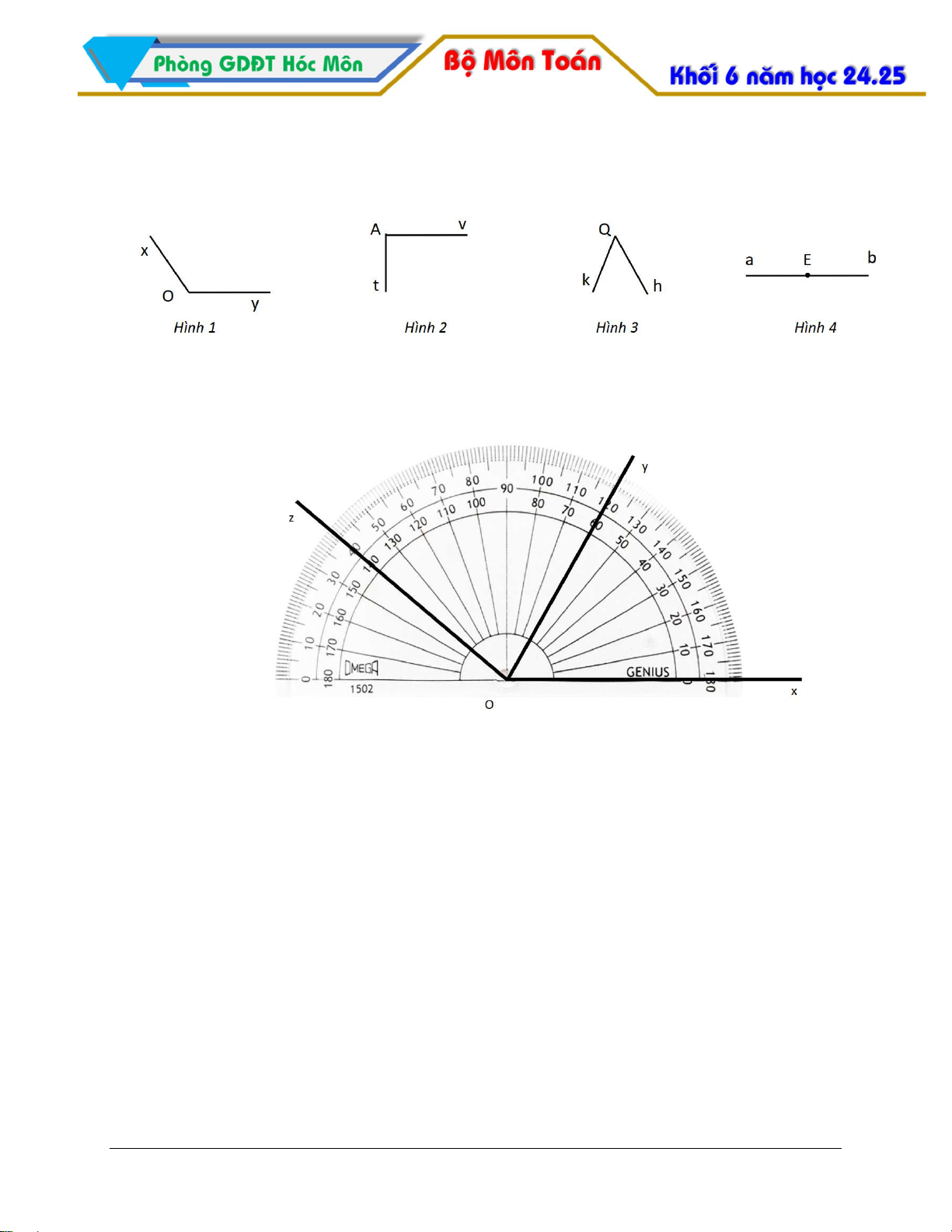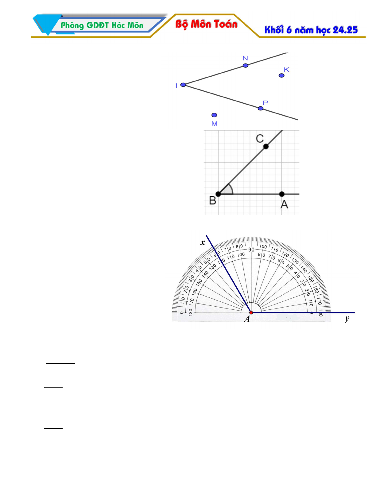 Tên góc ở hình vẽ bên là: A. HIK I B. HKI H C. IHK K D. IKH Câu 7. Quan sát hình vẽ bên và y cho biết góc nhọn là: x y O Hı̀nh 1 x O Hı̀nh 2