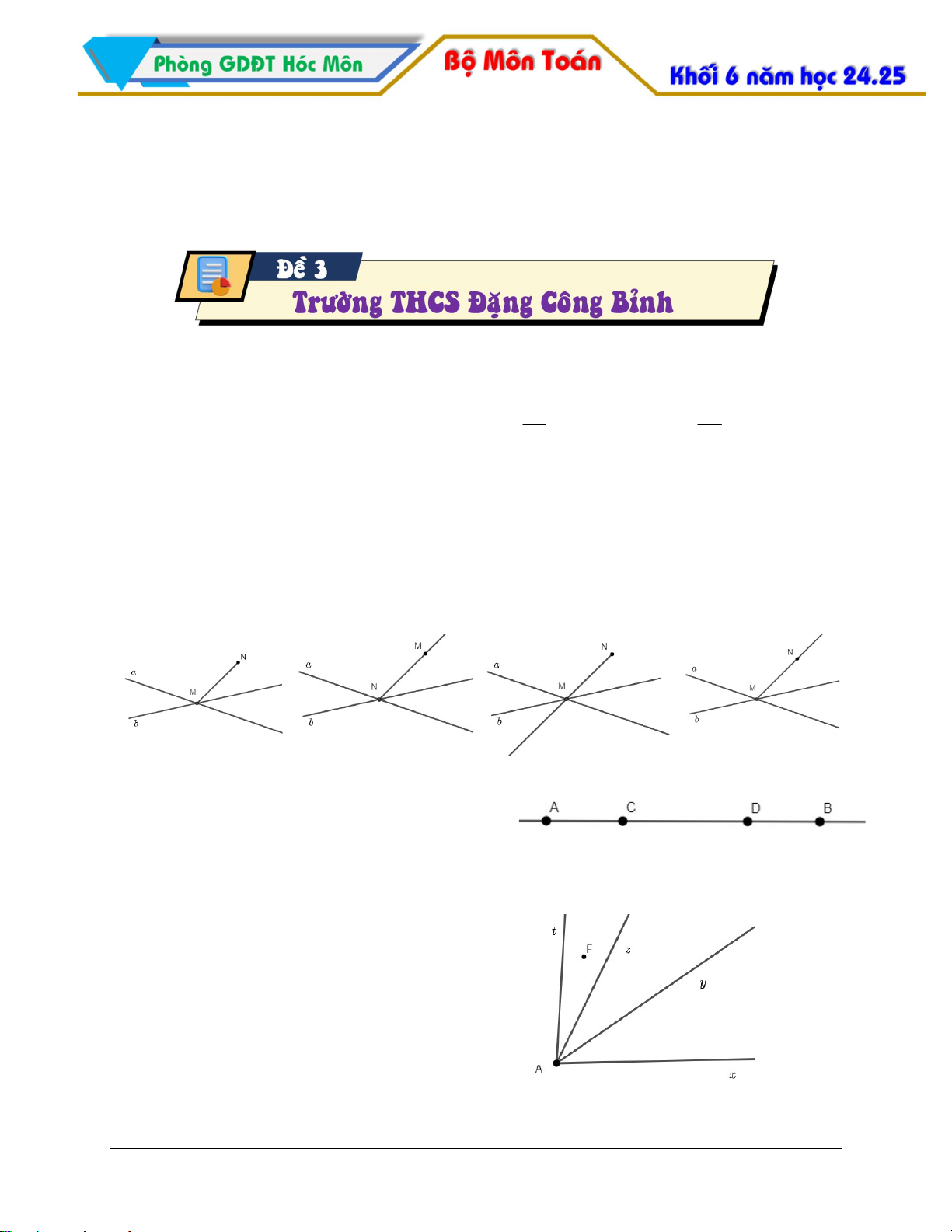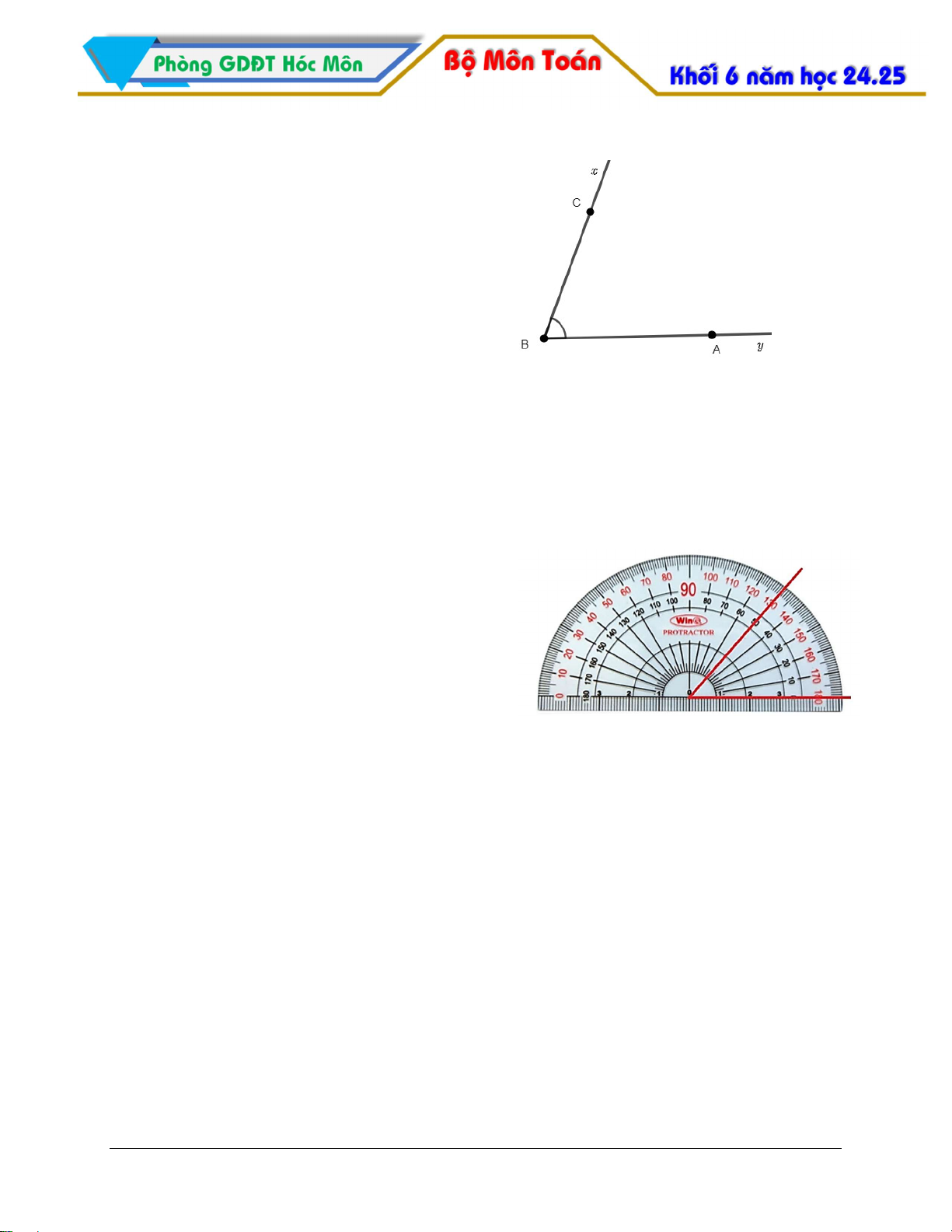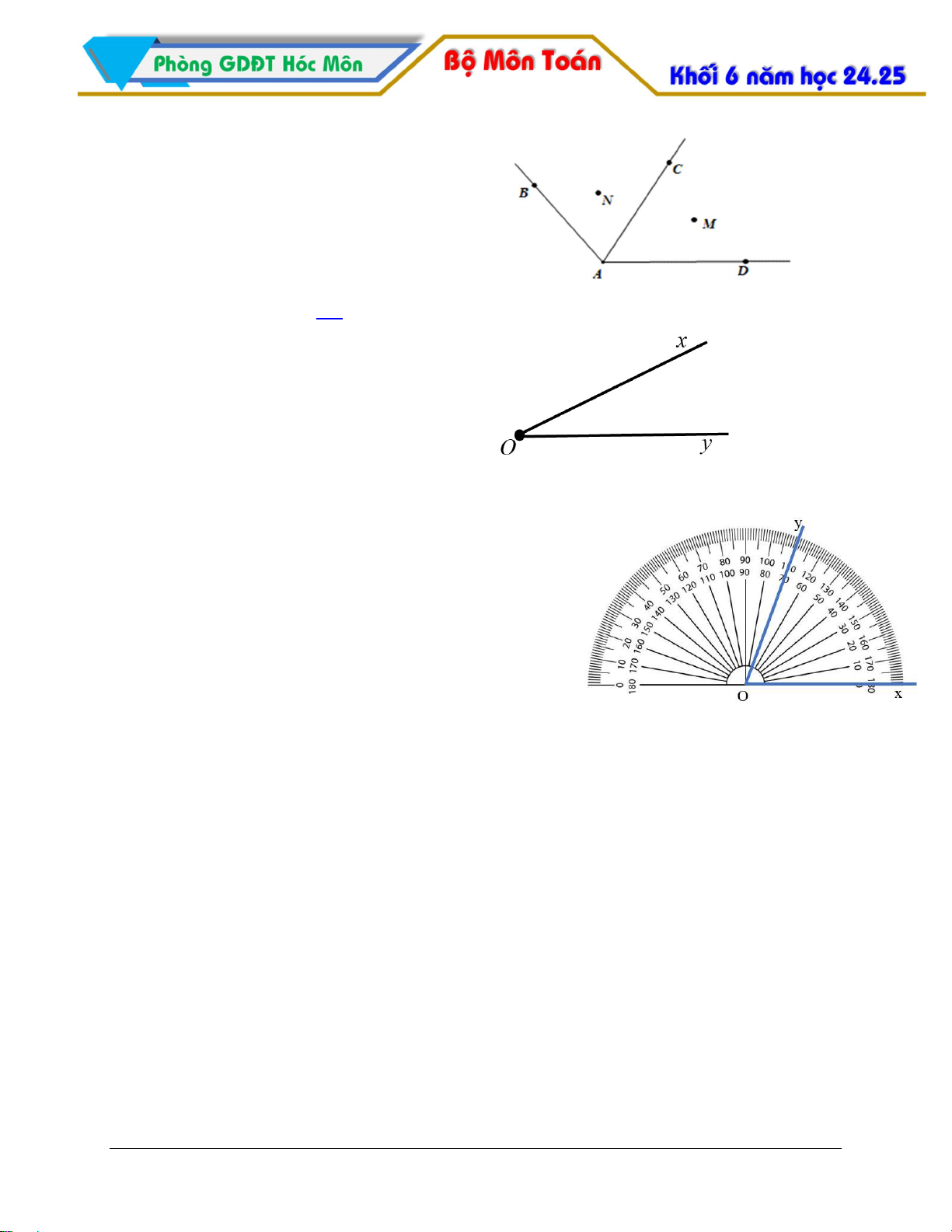 Trên hı̀nh sau, ke tên hai tia đoi nhau: A. Mx, Ny B. Mx, My C. Mx, Nx x M N y D. My, Ny Câu 5. Hı̀nh bên cho ta: A. Góc ABC . B. Góc BCA C. Góc CAB D. Góc B Câu 6. Điem nào nam bên