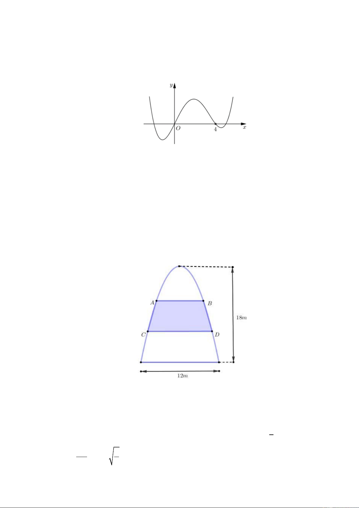 Câu 26: Một cổng chào có dạng hình Parabol chiều cao 18 m , chiều rộng chân đế 12 m . Người ta căng hai sợi