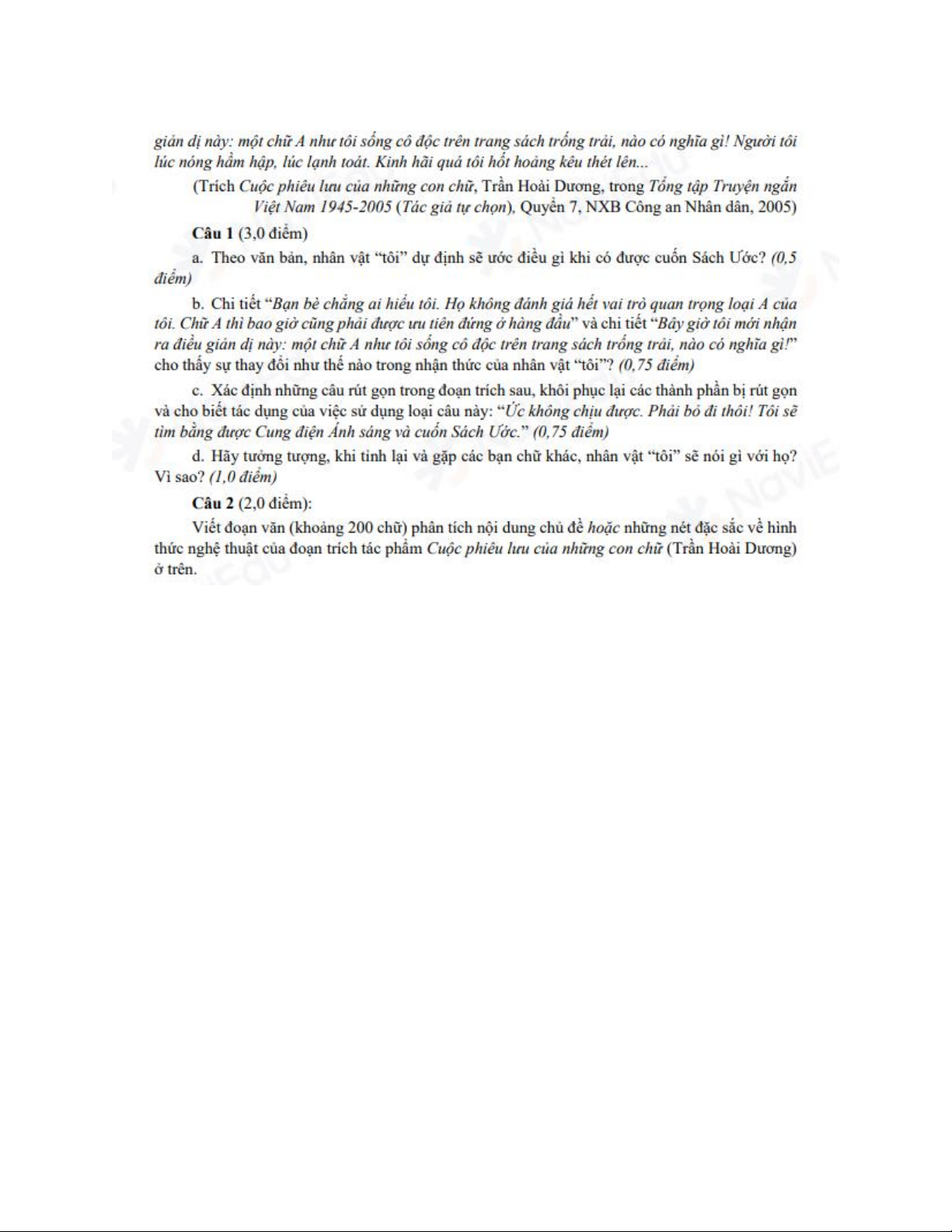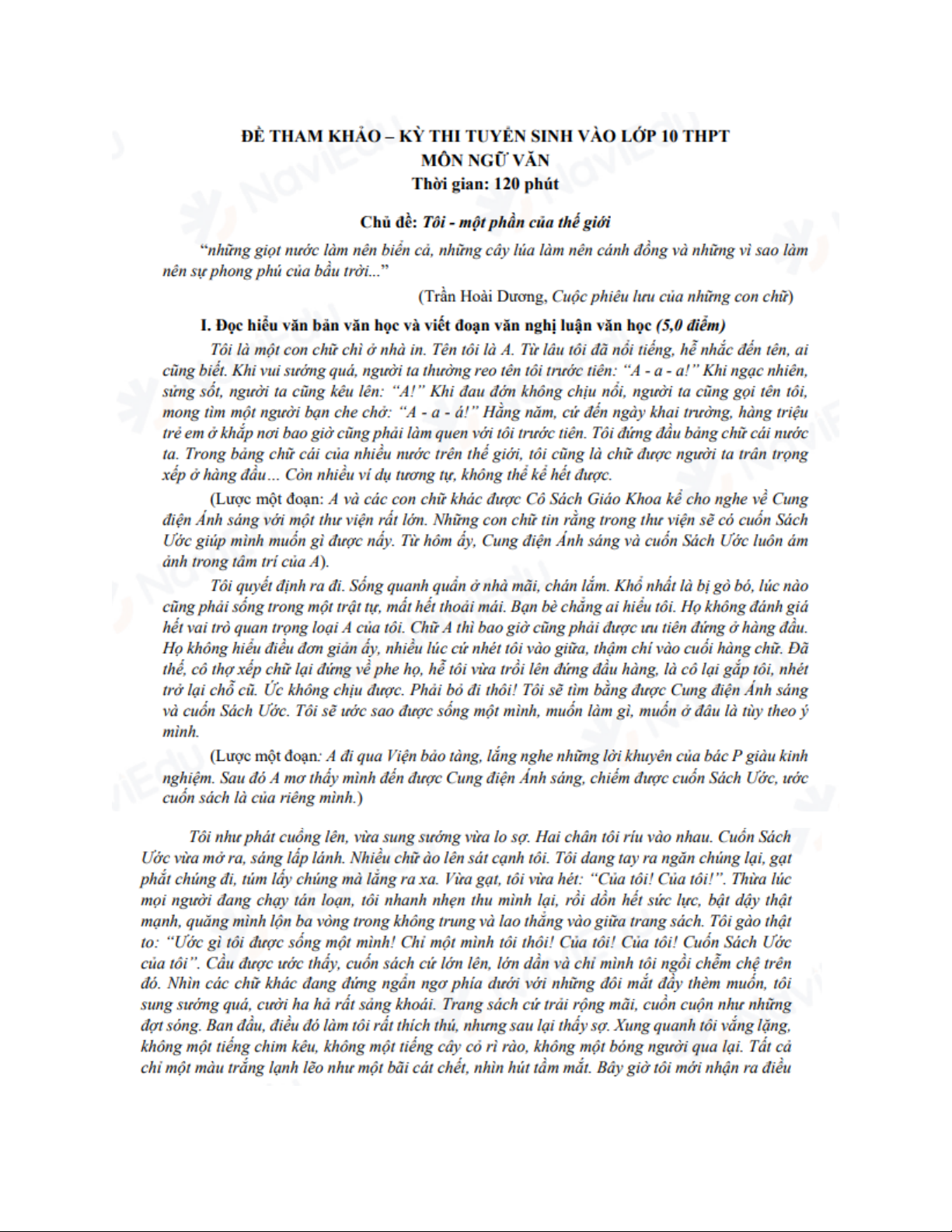 Đề tham khảo kỳ thi tuyển sinh vào lớp 10 môn Ngữ văn năm 2026-2027 – TPHCM