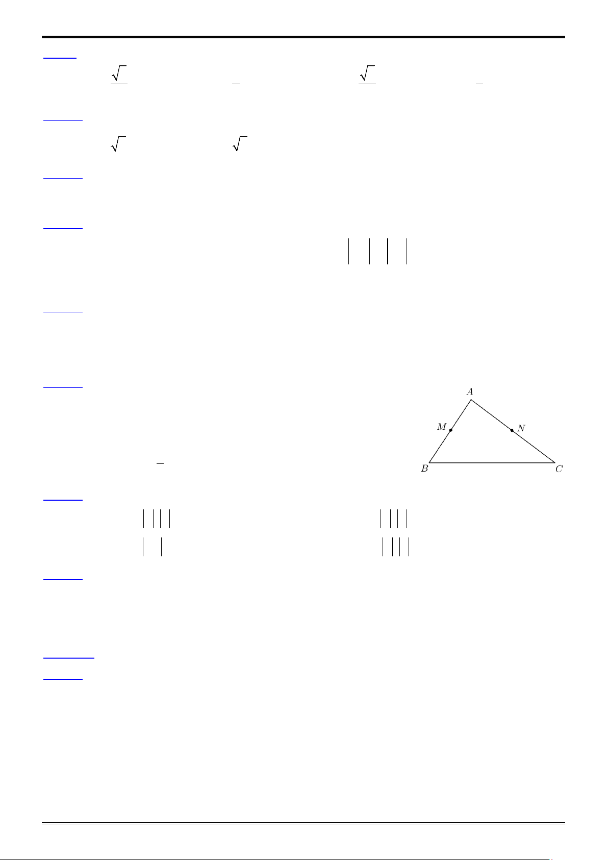 Câu 14. Gọi M, N lần lượt là trung điểm của các cạnh , AB AC của
