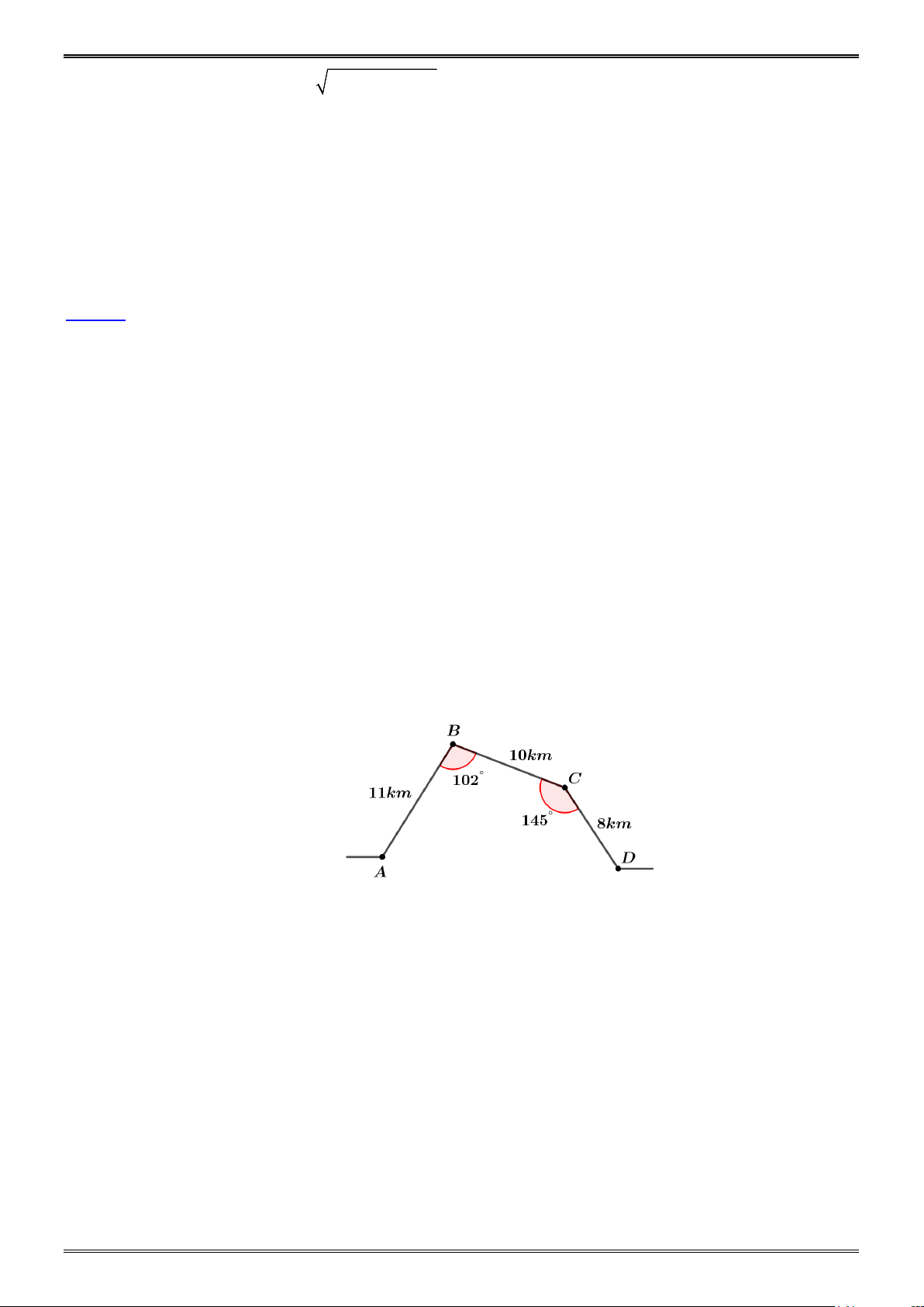 km CD 8km và ABC 102 , BCD 145 . Tính