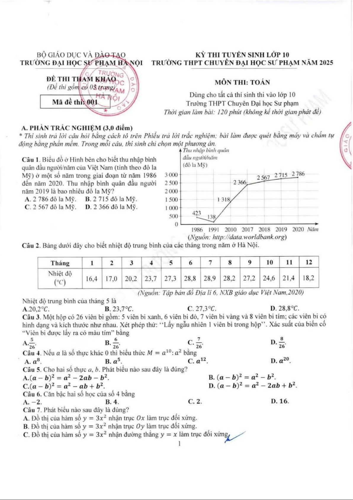 Đề tham khảo tuyển sinh lớp 10 môn Toán (chung) năm 2025 trường chuyên ĐHSP Hà Nội
