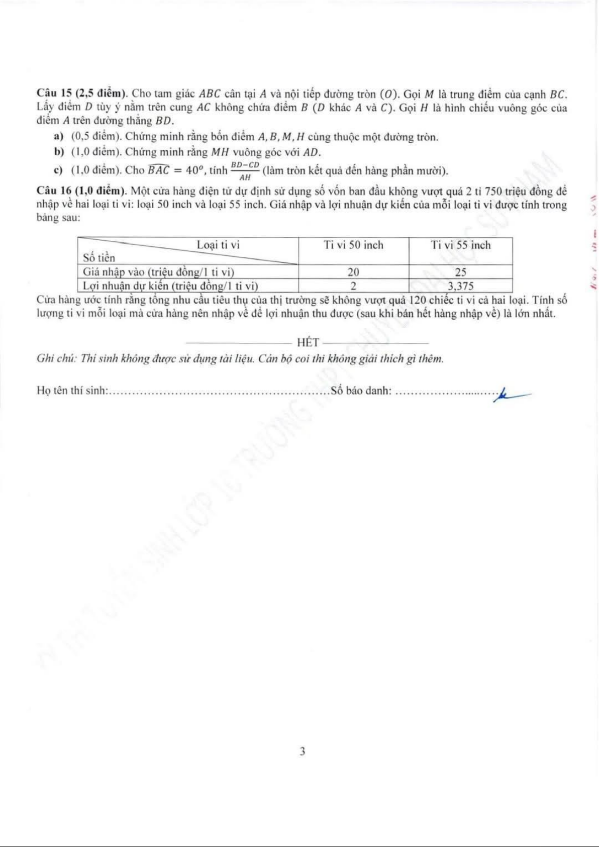 Đề tuyển sinh lớp 10 THPT môn Toán năm 2024 – 2025 sở GD&ĐT Hà Nội
