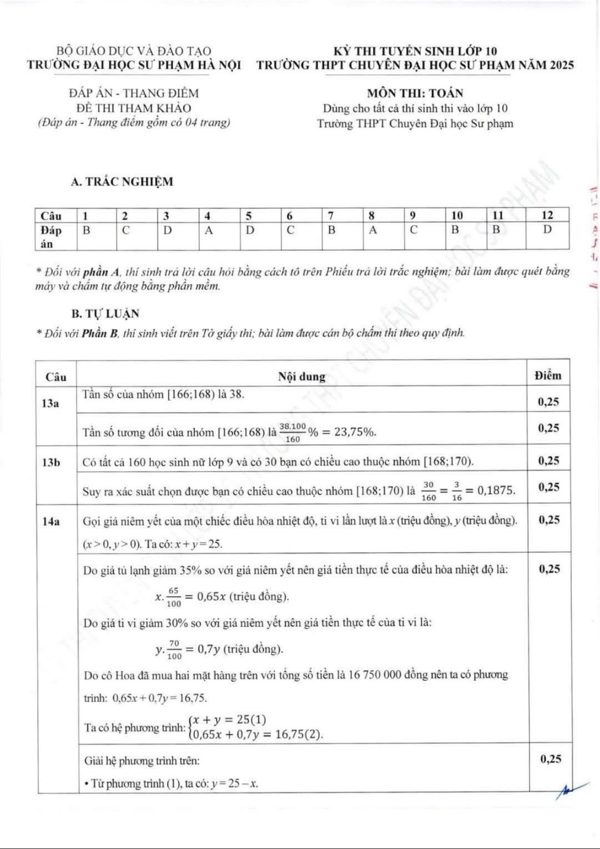 Giới thiệu đến quý thầy, cô giáo và các em học sinh lớp 9 đề tham khảo kỳ thi tuyển sinh vào lớp 10 môn Toán (chung – dành cho tất cả các thí sinh) năm học 2025 – 2026 trường THPT chuyên Đại học Sư phạm Hà Nội, thành phố Hà Nội. Đề thi cấu trúc 30% trắc nghiệm kết hợp 70% tự luận, thời gian làm bài 120 phút, có đáp án chi tiết và hướng dẫn chấm điểm.