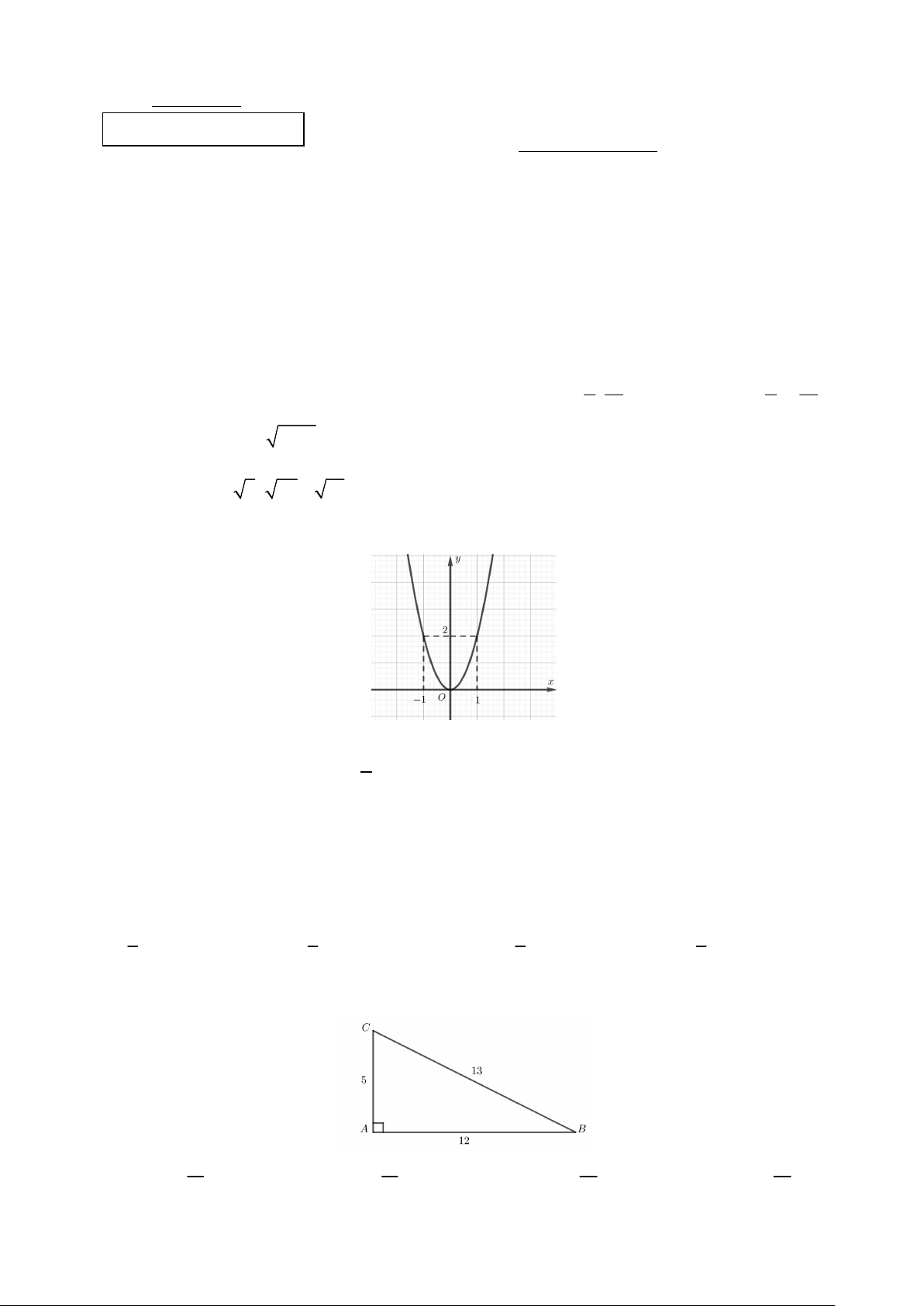 Câu 5. Đường cong trong hình vẽ là đồ thị của hàm số nào dưới đây? A. 2 y 2x . B. 2 y 2 x . C. 2 y x . D. 2 y x . 1
