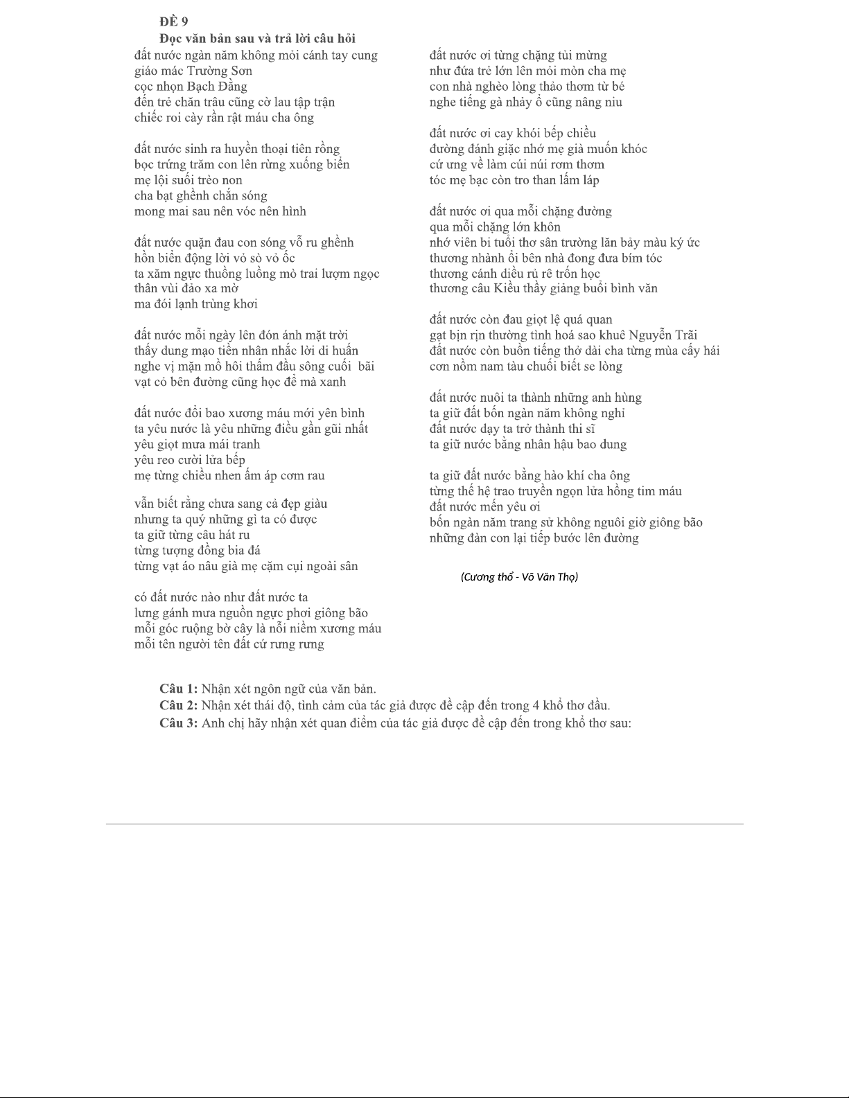 Đề thi 9 - Văn bản "Đất nước" của Võ Văn Thọ