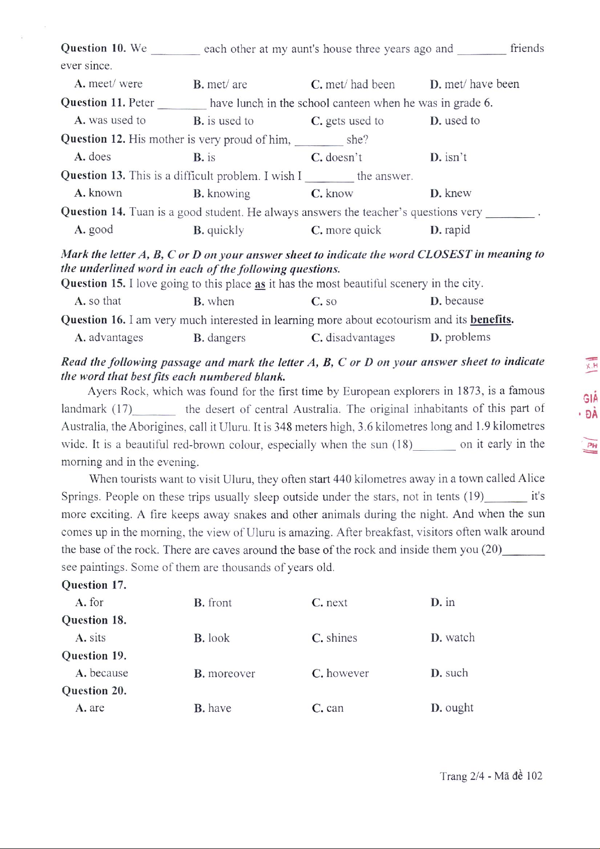 Đề Thi | Tiếng Anh 10. Tài liệu giúp bạn tham khảo, ôn tập và đạt kết quả cao. Mời đọc đón xem