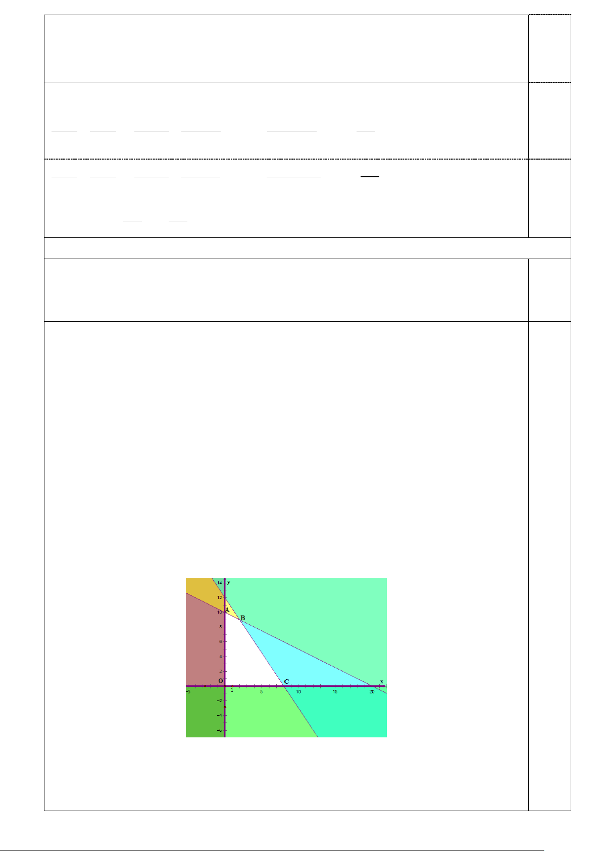 Biểu diễn từng miền nghiệm của mỗi bất phương trình trên hệ trục tọa độ Oxy. 0.25đ